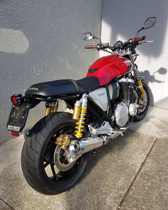 Zum Glück hat er von dem Kennzeichenhalter an der Schwinge abgesehen und das schöne Rot gelassen wie's ist