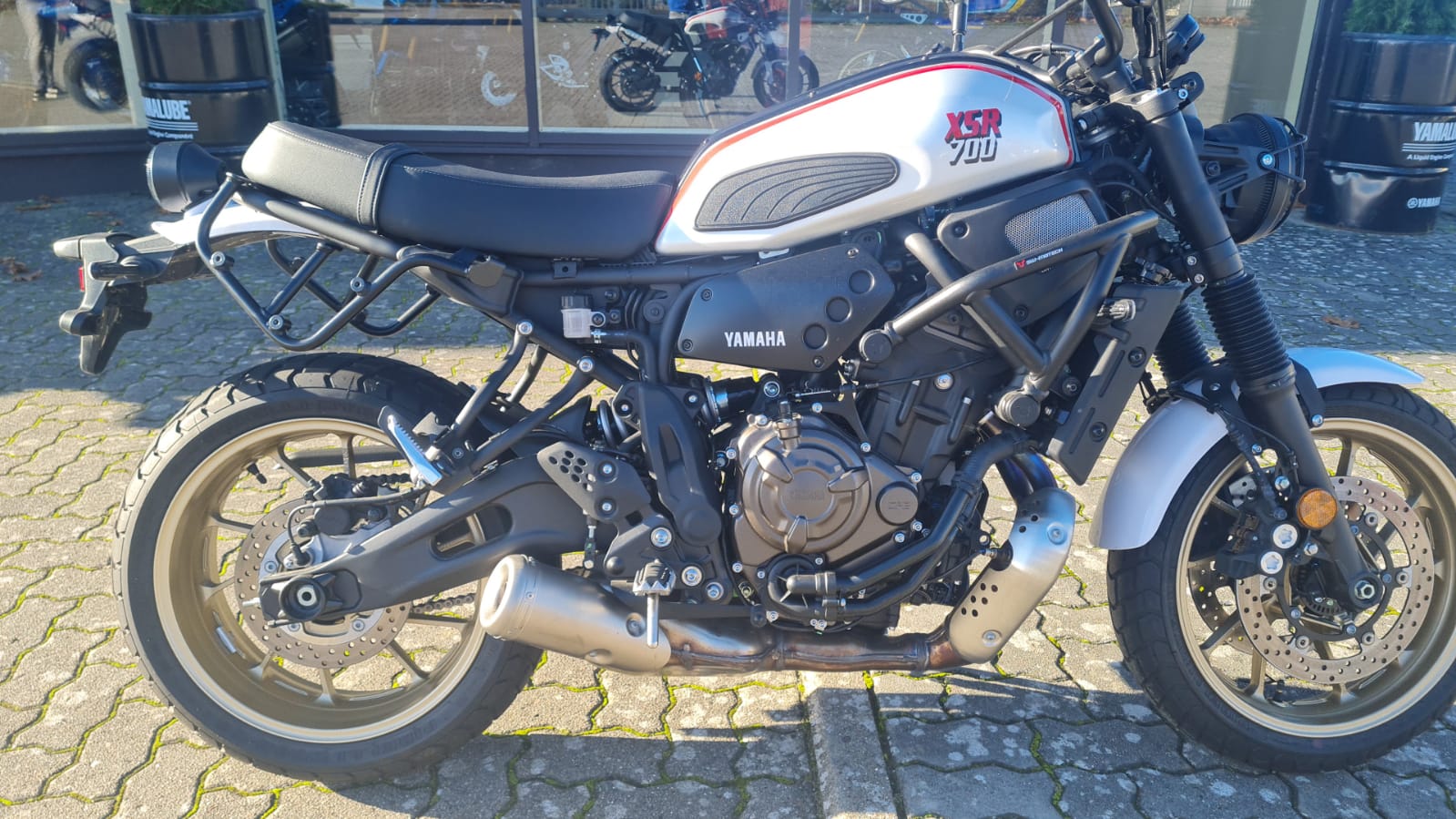 #300 in natura sieht die XSR wesentlich besser aus ( hier verzerrt die phonelinse das ganze )......mir ist sie ne Kleinigkeit zu hoch als , dass ich mich pudelwohl fühlen würde ansonsten wärs ein Kandidat gewesen für mich als sie raus kam