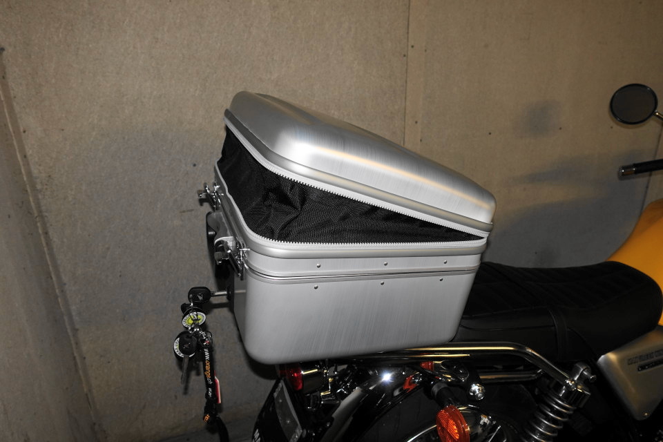 nach 2-3 jahren änderte Honda das Design des Topcases...zu würfelförmig und ohne Reissverschluss......ich hoffe der hauptgrund war nicht der reissverschluss bzw. das flexible Material dahinter für die Erweiterung.......und wenns brüchig werden sollte hält hoffentlich dann noch der Reissverschluss......die Erweiterung brauche ich ja nicht wirklich......und sonst wird halt dann gebastelt.....