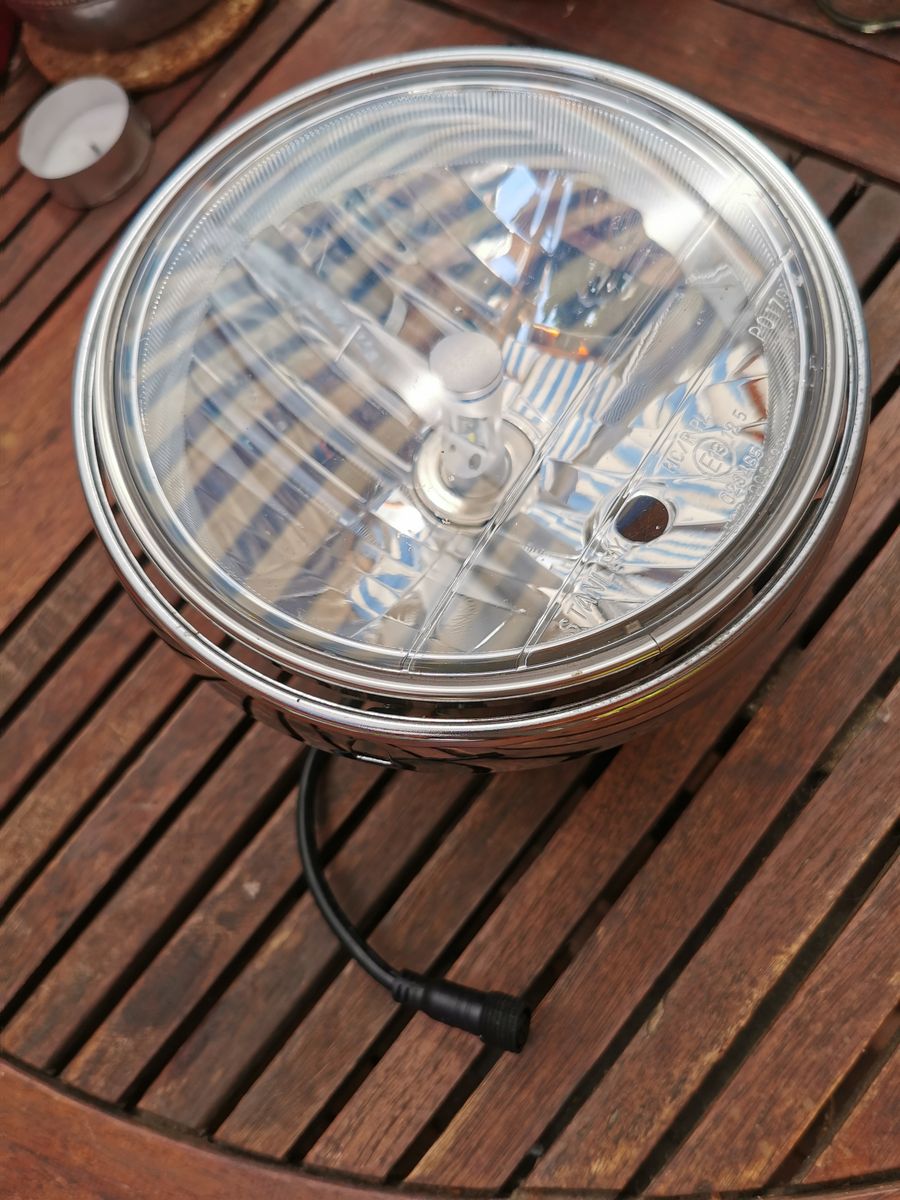 Ich biete einen Original-Scheinwerfereinsatz der CB1100 (EX) . Der Scheinwerfereinsatz ist umgerüstet auf LED. Philips-LED (Fern-und Abblendlicht). Sehr gute Lichtausbeute, blendet und streut nicht, klare Hell-Dunkelabgrenzung.