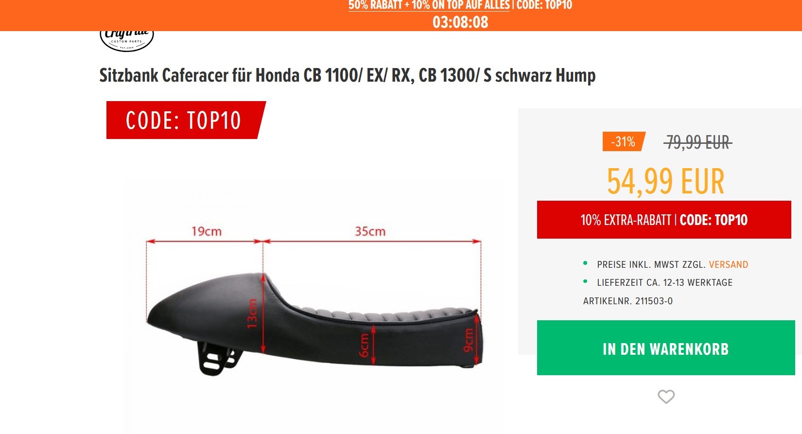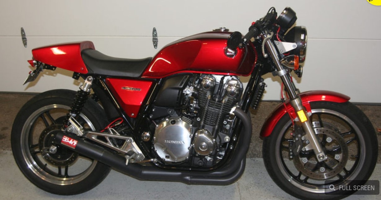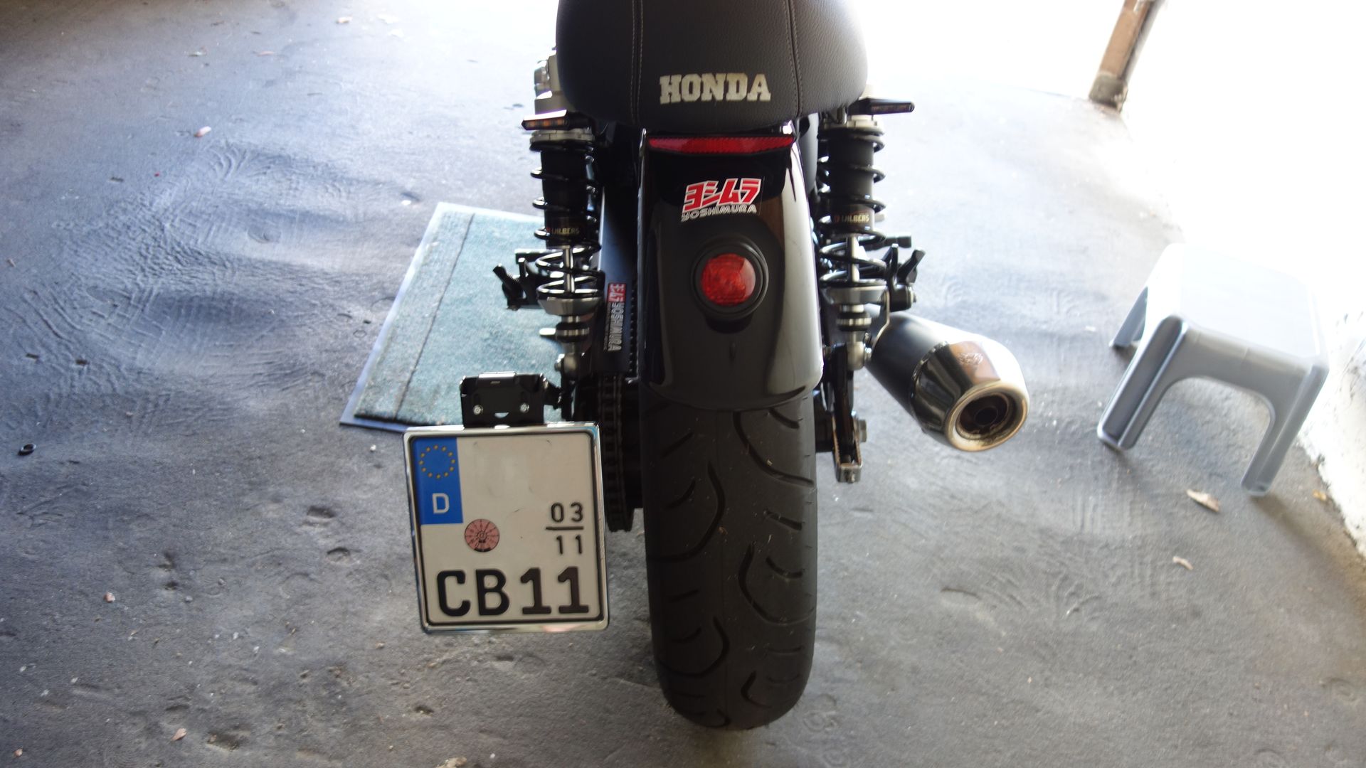 Alles anzeigenDas ist meinen Cb1100 bj 2013...einiges gemacht ( Wilbers Gabelfedern,Stoßdämpfer,anderes Schutzblech,Lenker,Kupplungs und Gashebel,Sitz,Rücklicht,Kettenschutz,LED Blinker, Auspuff,seitliches Kennzeichenn,einiges schwarz lackiert ) und als neustes Teil die Halbschale von Samuraider aus Japan