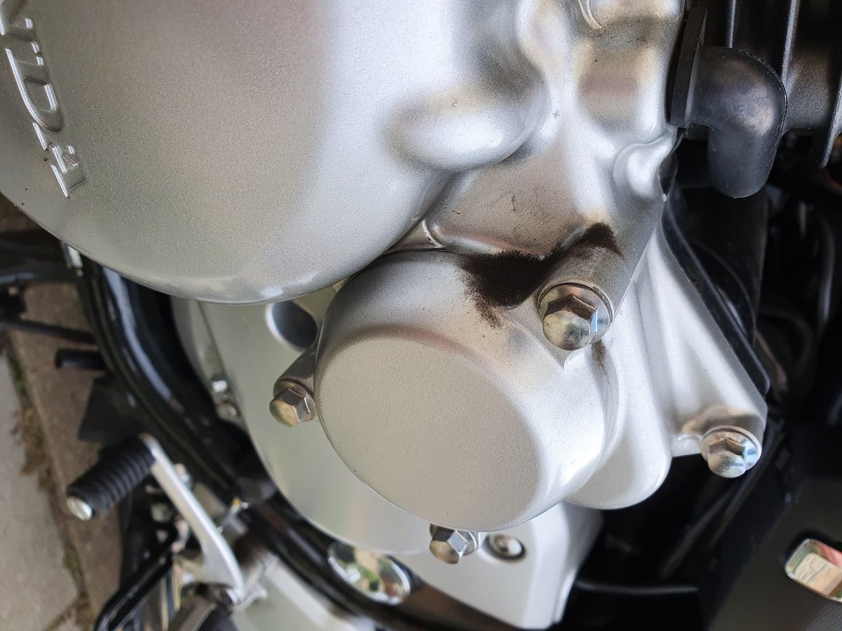 Links am Motor (Kupplung, glaube ich?) Ist nach einer Tour deutlich schwarzer Schmier - normal oder nicht dicht?