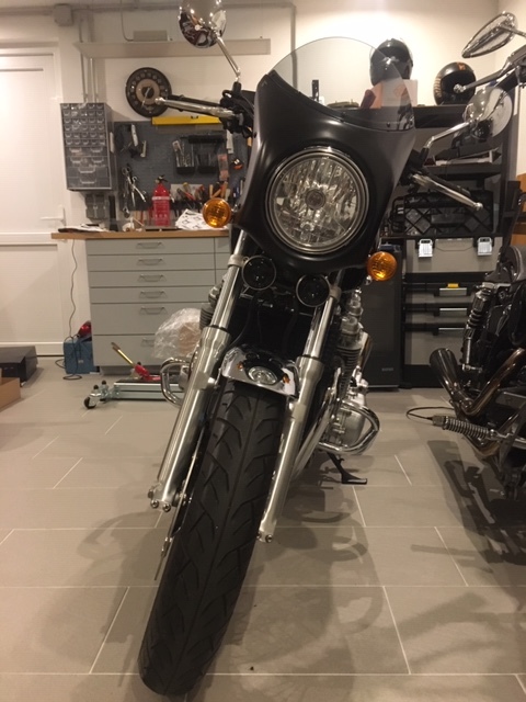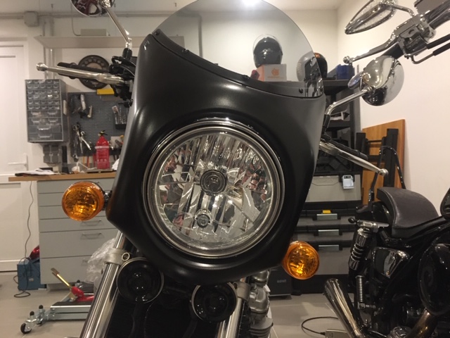 Schöne Lenkerverkleidung, ich denke ich werde sie schwarz matt lassen, oder im Winter mitlackieren lassen; candy-gold für Tank und Seitendeckel ist der Plan.