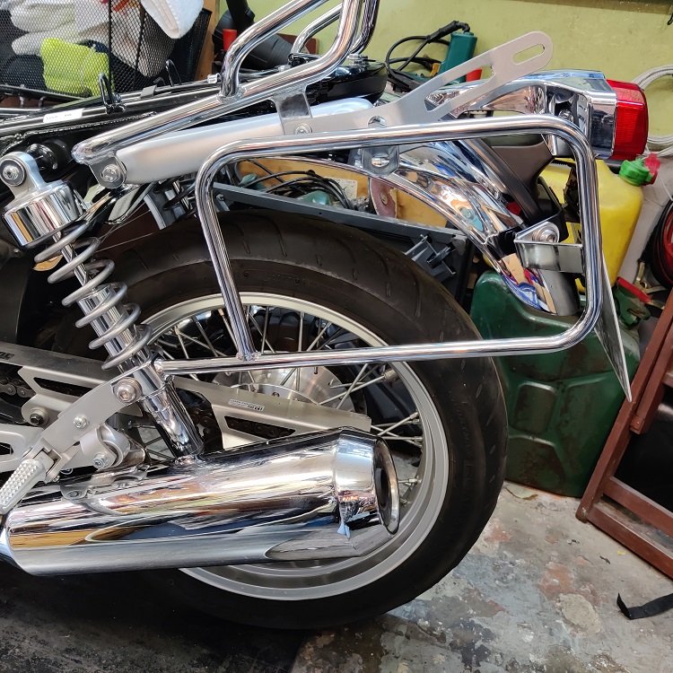 An meiner CB Seven Fifty habe ich auch die H&B Kofferhalter dran, aber sie fügen sich wesentlich harmonischer in das Gesamtbild ein. Da stört mich die "Reeling" nicht.