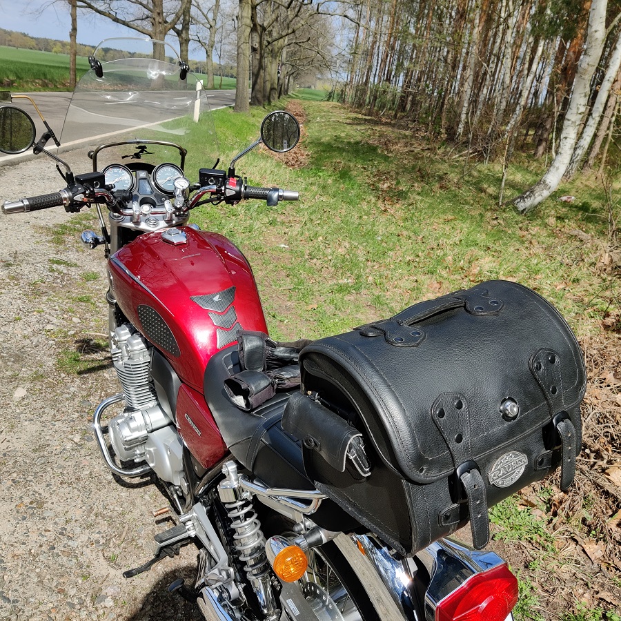 Zum einen möchte ich die Tasche eigentlich nur am Hotel abnehmen, sehe sie als zusätzliche Sicherheit bei Umfallern oder gar Stürzen. Hat sich bei früheren Bikes auch in Kombination mit Sturzbügel vorn bewehrt, bei der CB zum Glück bis jetzt nicht gebraucht. Aber ich kenne auch den Fall, wo jemand nur in der Stadt auf glattem Zebrastreifen wegrutschte und sich auf der Seite aufkommend mit dem Moped oben die Hüfte brach, Tasche und Sturzbügel hätten wohl einiges aufgefangen. Aber das erhöht die Anforderungen an die Ästhetik der Seitentaschen/Koffer noch mehr.