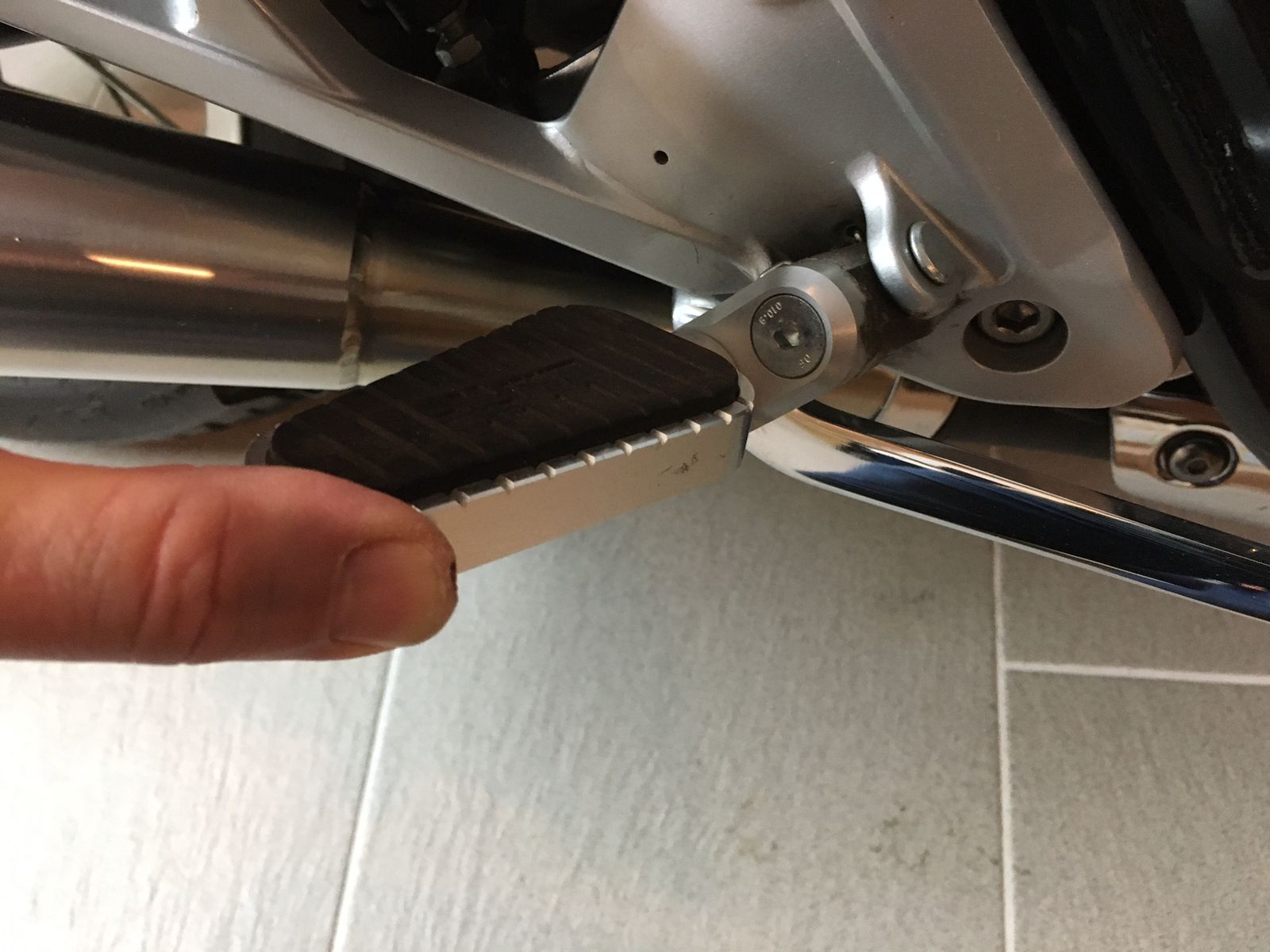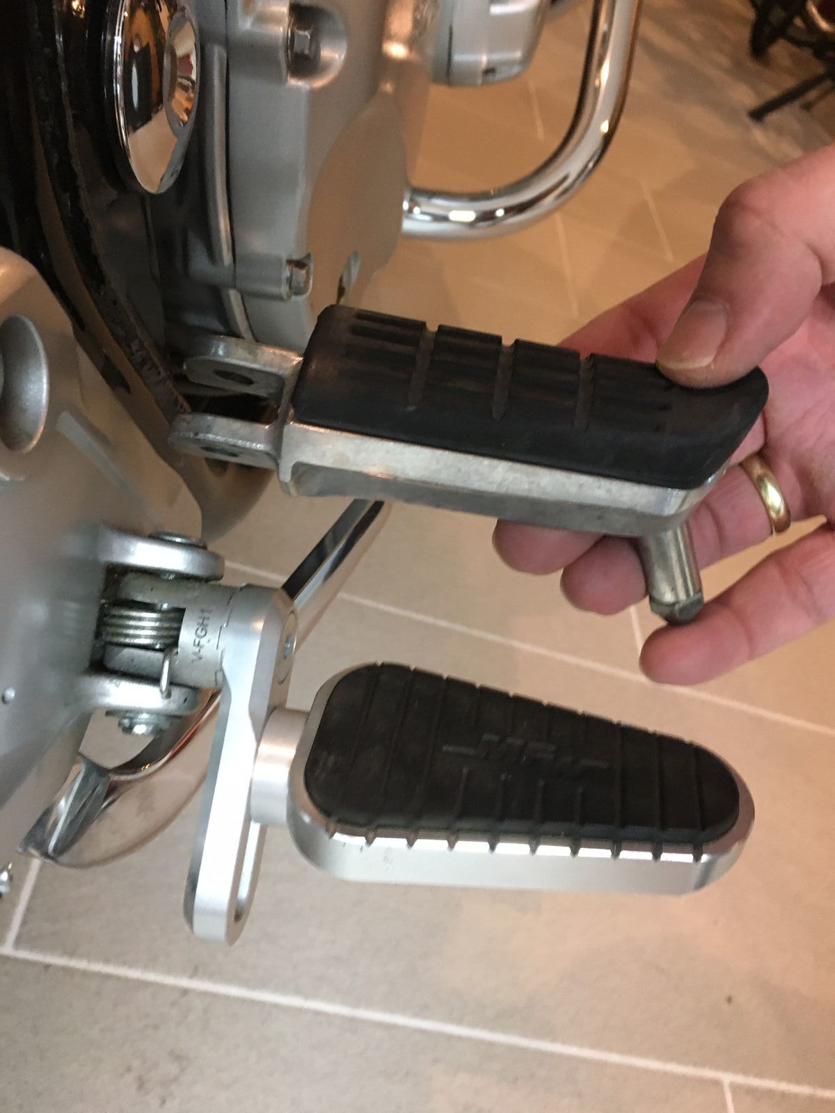 Ich teile mal ein paar Bilder von meinen MFW Rasten. Die waren angebaut als ich meine EX letztes Jahr gekauft habe. Bein- und Fußposition sind für 1,85m ganz bequem so, deswegen habe ich nichts verändert, obwohl ich natürlich noch einstellen könnte.