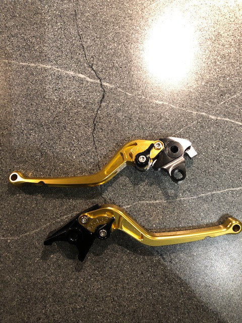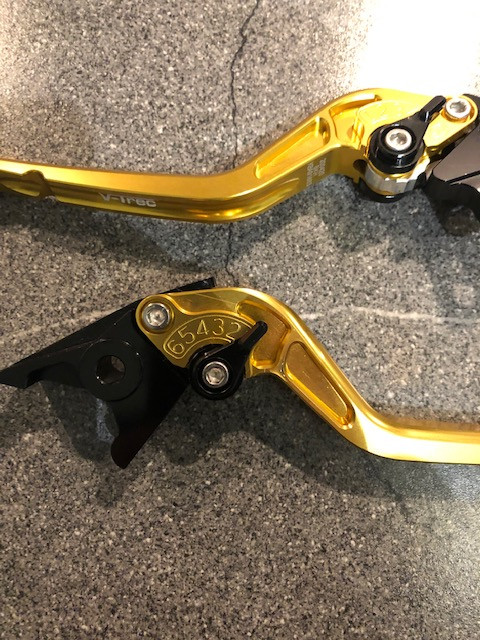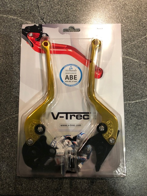 Zum Verkauf steht ein Satz Hebel von V-Trec in der "langen Ausführung" in Gold mit schwarzen Verstellern. Die Hebel sind 6 fach verstellbar und haben eine ABE.