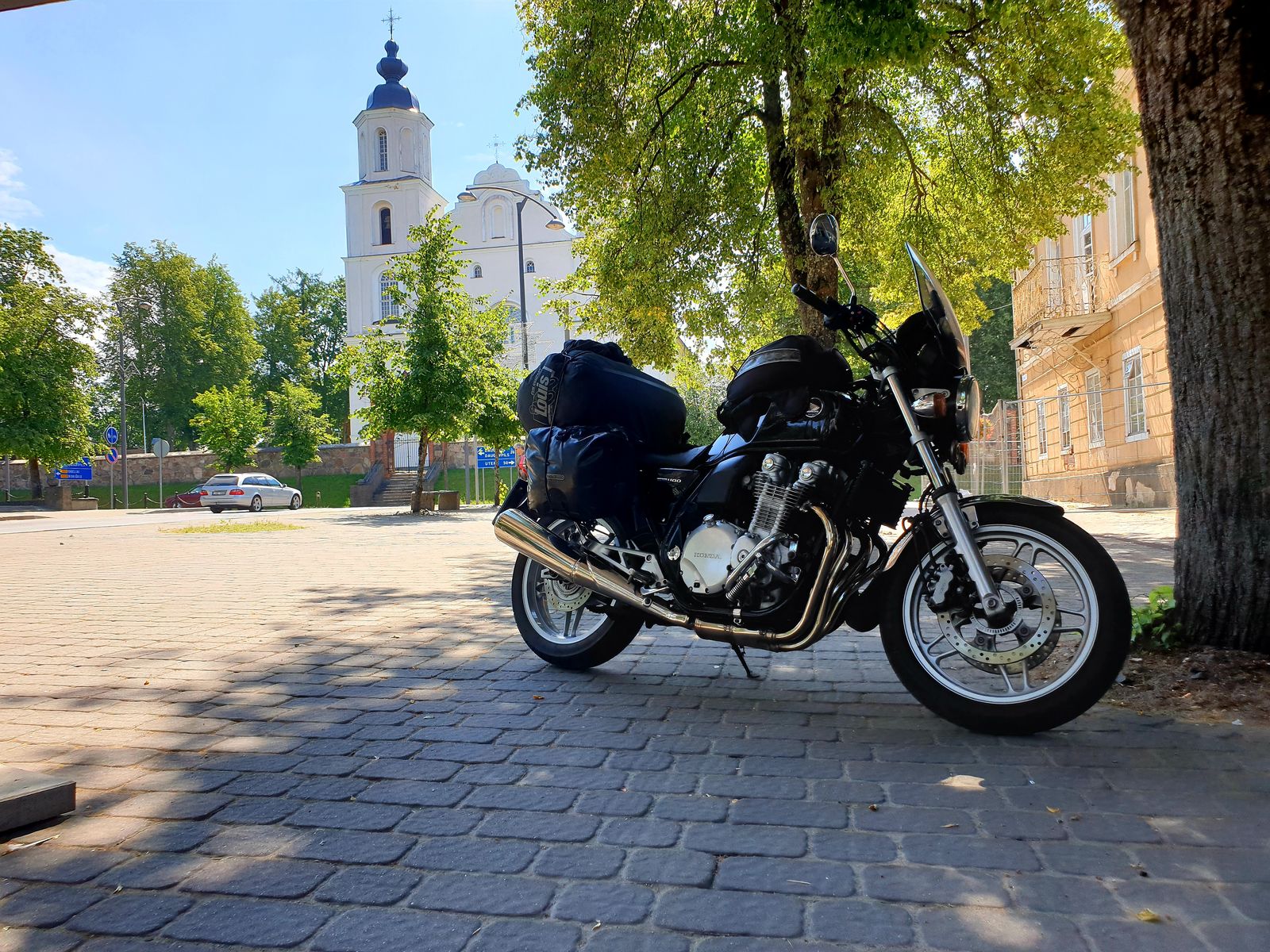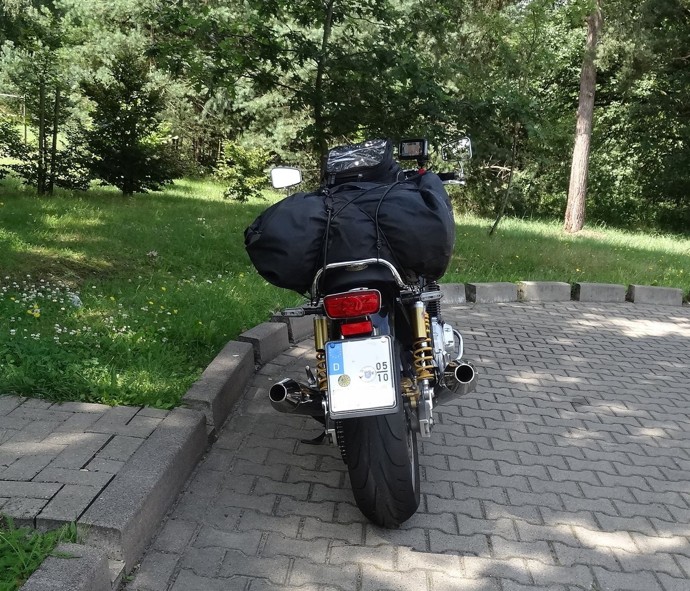 Im Sommer habe ich die CB 1000 RS als Packesel im Wortsinn genutzt. Hier auf dem Weg hoch zur Ostsee. Selbst so voll bepackt ist die Straßenlage tadellos. Auch auf der Autobahn, bei hoher Geschwindigkeit. So bepackt bin ich die Strecke von Frankfurt nach Kassel in einer Stunde gefahren. 148 Kilometer. Dies ohne Risiko, ohne Wackelei….