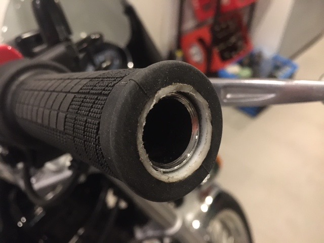 Also erstmal ja. Ich habe die Lenkerendgewichte raus, auf der rechten Seite auch die Lenkergewichte.