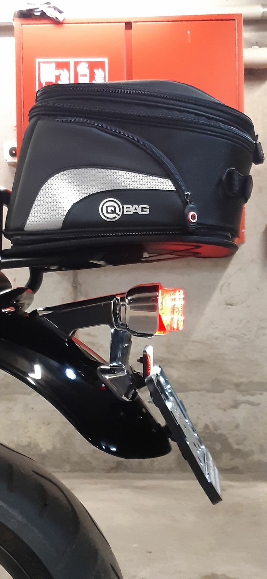 Der Gepäckträger ist ziemlich kurz, daher kann die Tasche auf das Rücklicht kippen, aber ich werde an der Kunstoffplatte 2 Hacken platzieren um die Platte an der vordern Gepäckträger Strebe einzuhängen!
