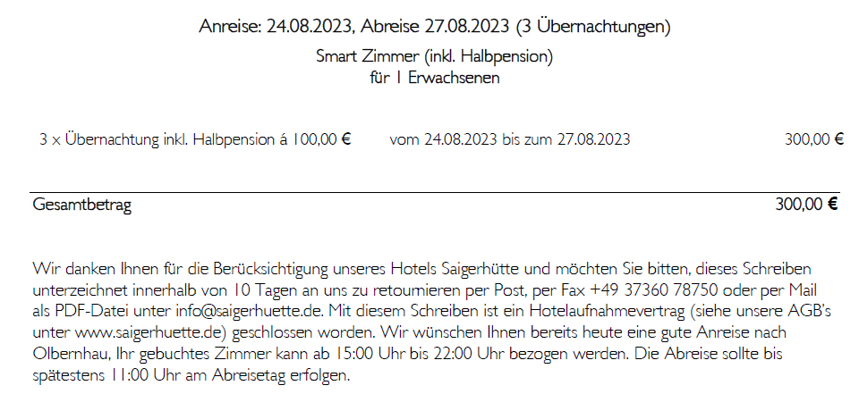 Das ist etwas irritierend. Aber ich hab schon die Bestätigung vom Hotel und alle Häkchen gesetzt.