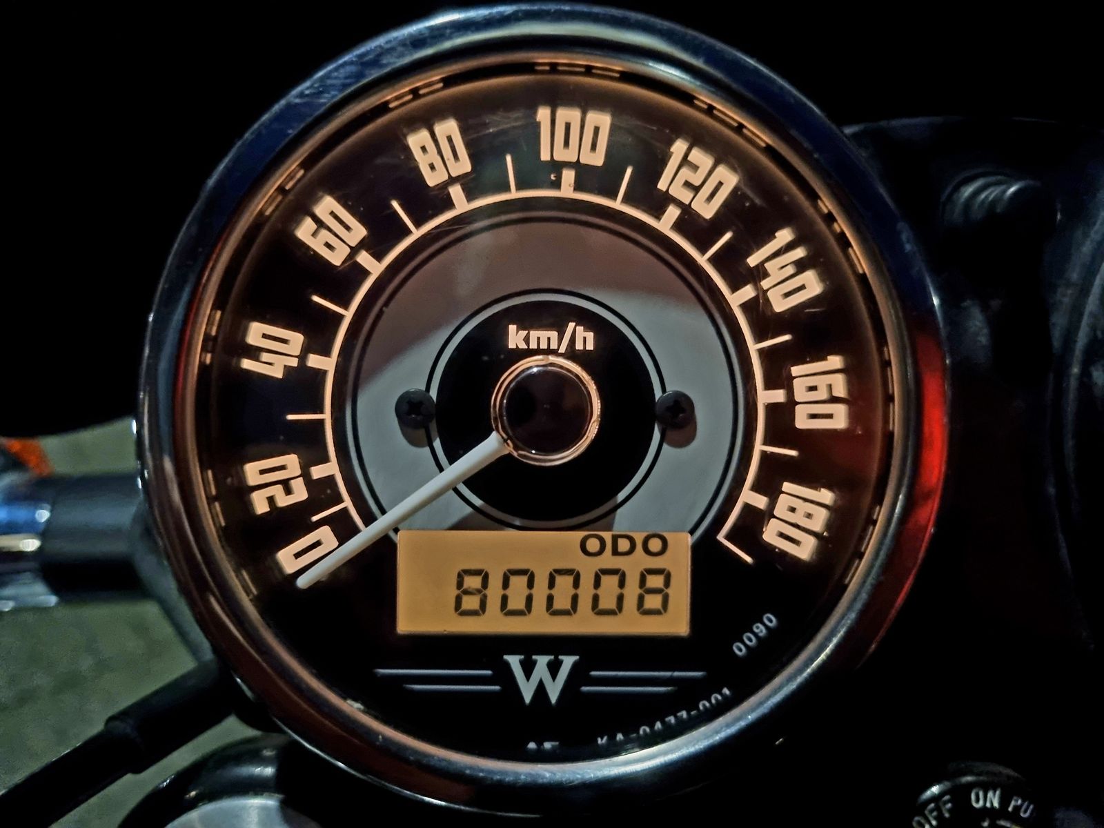 Heute Abend mit der W 80.000 selbstgefahrene km auf dem Tacho passiert. Links und rechts eine 8, dazwischen ein paar Nullen.