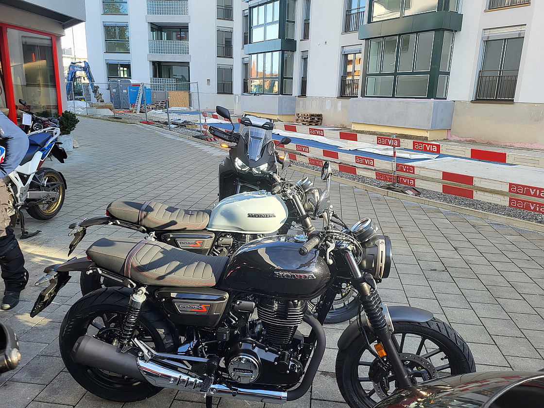 . bei der CB1100 lehne ich wesentlich weiter nach vorne und habe nen engeren Kniewinkel.....