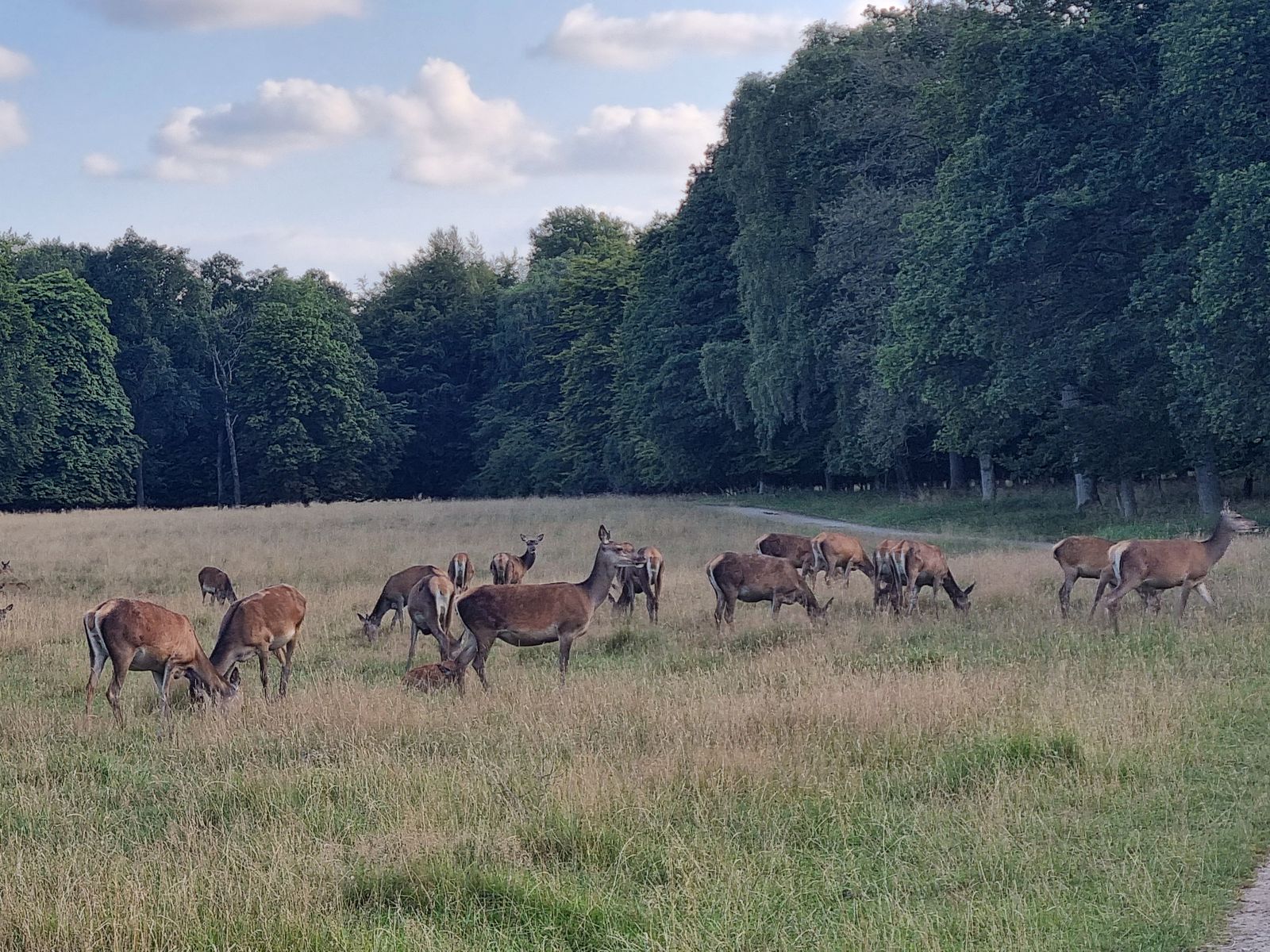 #10 Gestern wurde ein langer Spaziergang im 11 Quadratkilometer großen Jægersborg Dyrehave Naturschutzpark mit großem Hirsch- und Hirschkuhvorkommen nördlich von Kopenhagen, mit der CB angesteuert, unternommen als Kontrastprogramm zur Visite in Christiania, diesem Relikt aus Hippie Shake Free Spirit Freetown Ambiente, das zur Tourineppshow mit entsorgter Pushermeile mutiert ist. Das in die Luft gehängte Depnergespann fand ich dort am interessantesten als Lichtblick inmitten der sonst überladenen optischen Reizüberflutung aus Catering Buden, Verkaufsständen, Graffity, abgerockten Gebäuden und 'art und non art'. Der ganze Tag blieb sonnig, warm und trocken.
