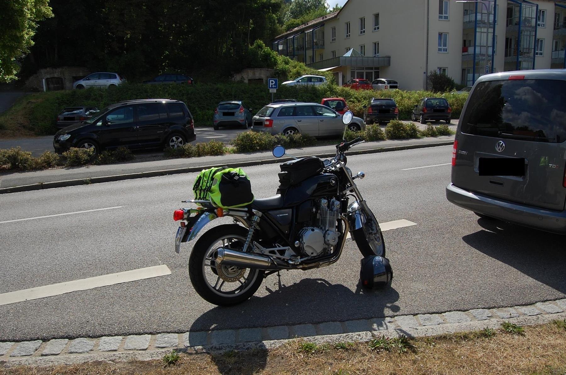 schön schmal und keine Probleme mit dem Lenker (Hupe !)