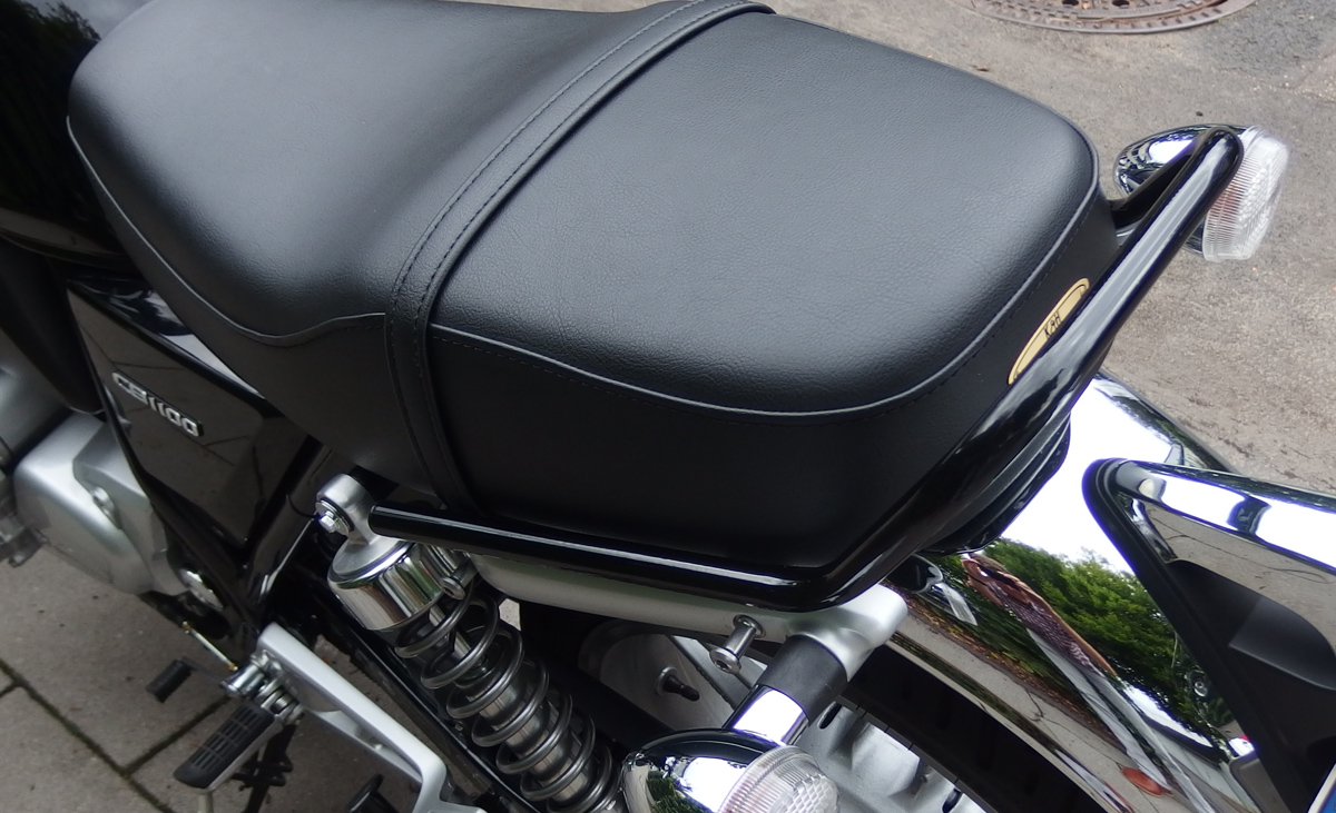 Es gibt da verschiedene Ausführungen für die CB (siehe den Nahtverlauf), auch die Farben sind wählbar. Die Bank ist knapp 2 cm höher als das Original.