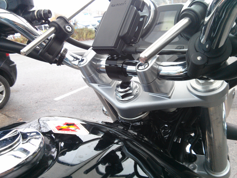 • Garmin Navi Halter an Lenkstange, Versorgungskabel unterm Tank durch an Klemme 15 im Sicherungskasten unterm Sitz