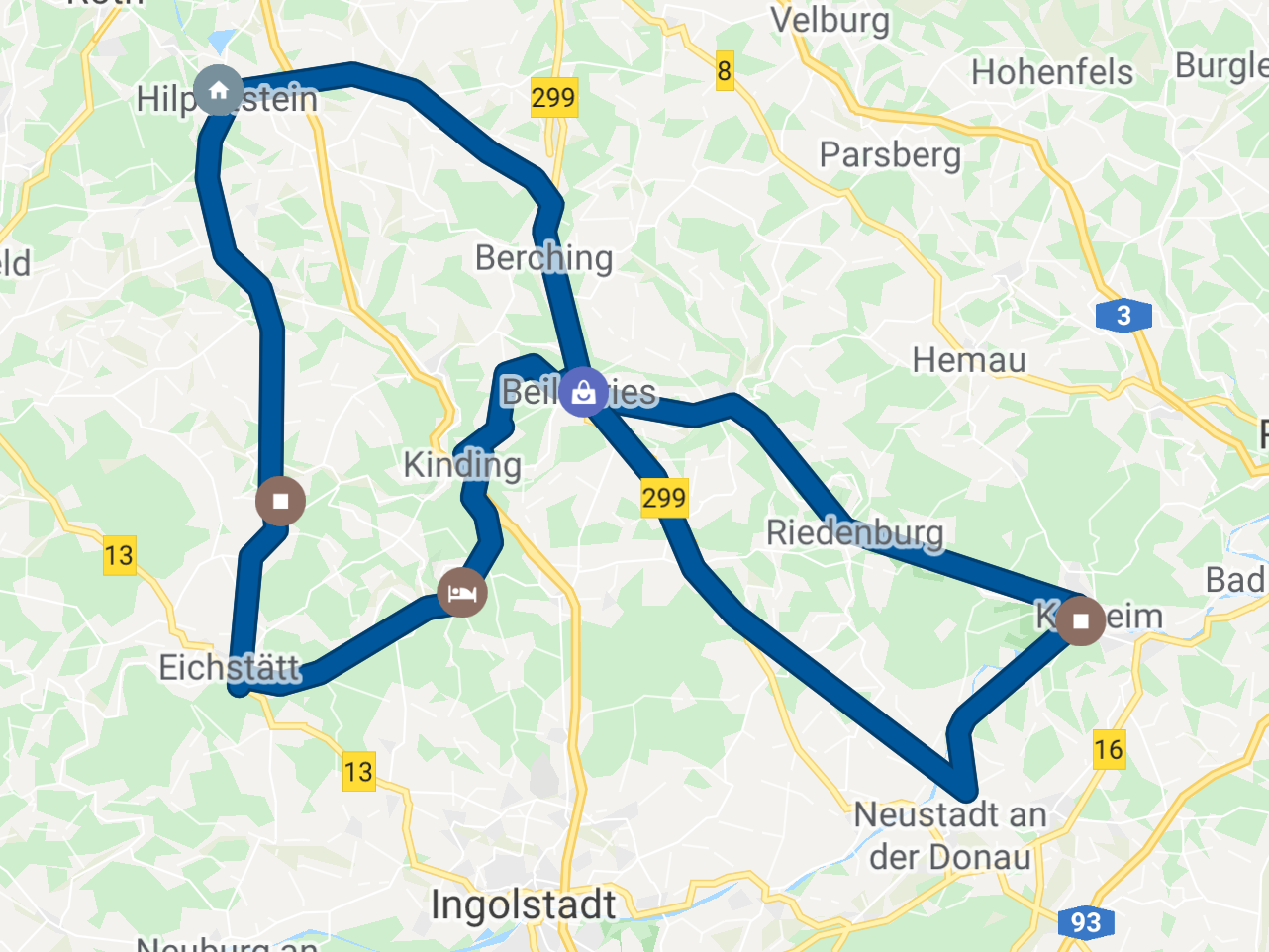Hilpoltstein - Titting - Eichstätt - Kipfenberg - Kinding - Beilngries - Riedenburg - Kehlheim - Weltenburg - Neustadt a.d. Donau