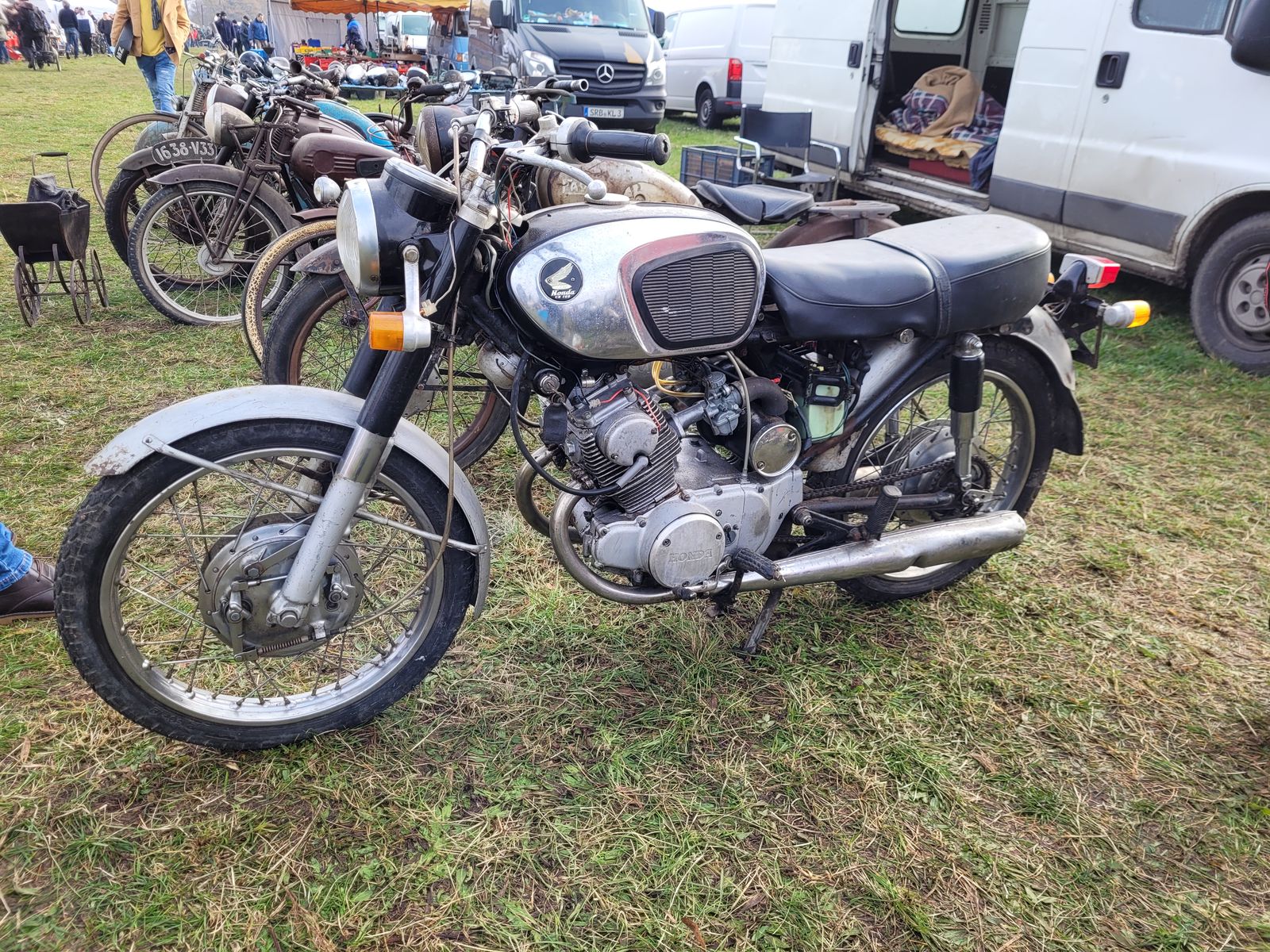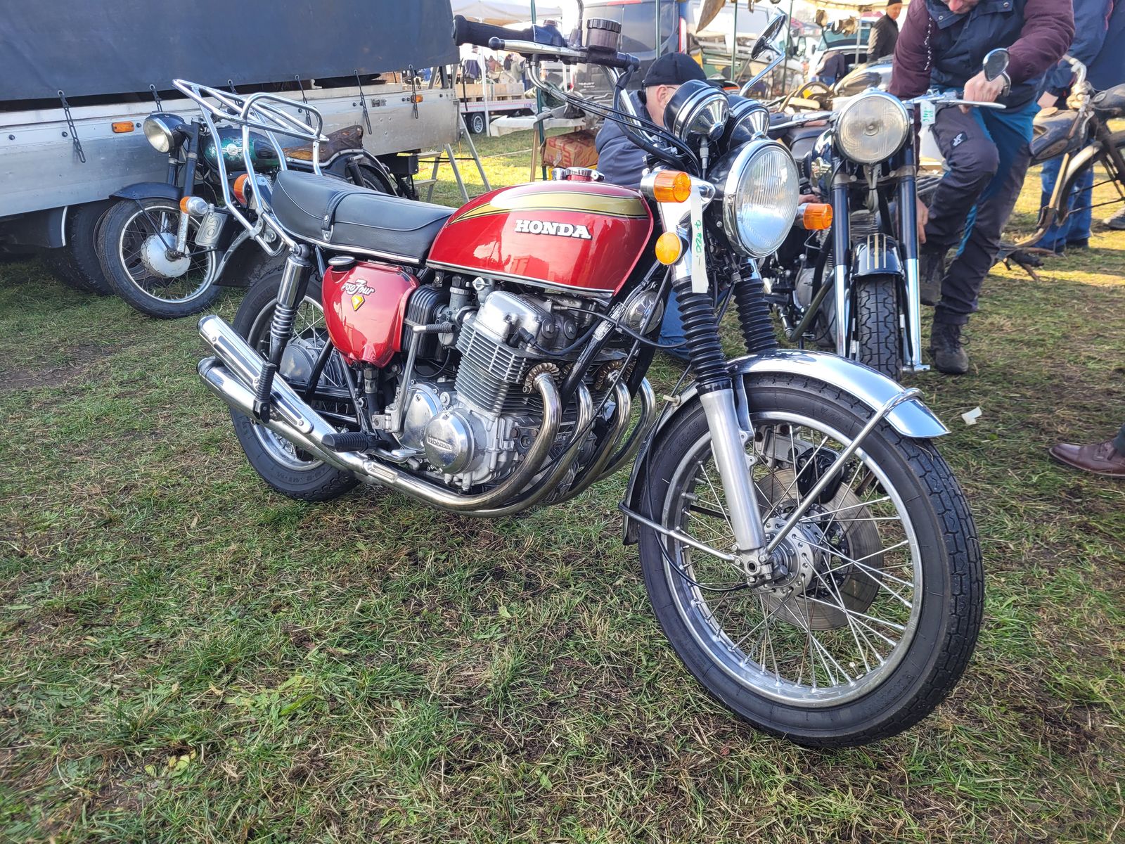 #3.270 Alles anzeigenHeute mit Robsen auf dem großen Teilemarkt in Wulkow bei Neuruppin gewesen und haben diese beiden Exemplare entdeckt. Das Preisschild an der Four zeigte 7.800 Euro an. Zwei echte Exoten auf einem Markt, der sonst von Simson, MZ und AWO dominiert wird.