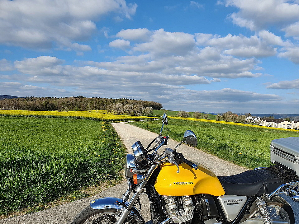#3.782 Alles anzeigenHeute früh dann doch wieder mal die Gabel und Rad an der CB raus um die Faltenbälge zu entfernen.