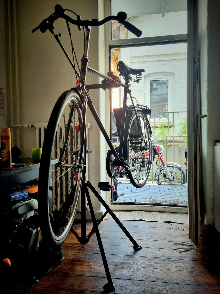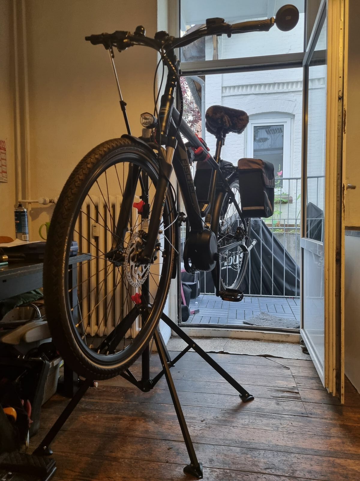 #4.187 Diesen Montageständer fand ich erschwinglich und nützlich zugleich für 30€ aus'm Bauhaus. Konnte heute leichter durch ihn der Kettenschaltung durch Feinjustierung zu genaueren Sprüngen verhelfen.