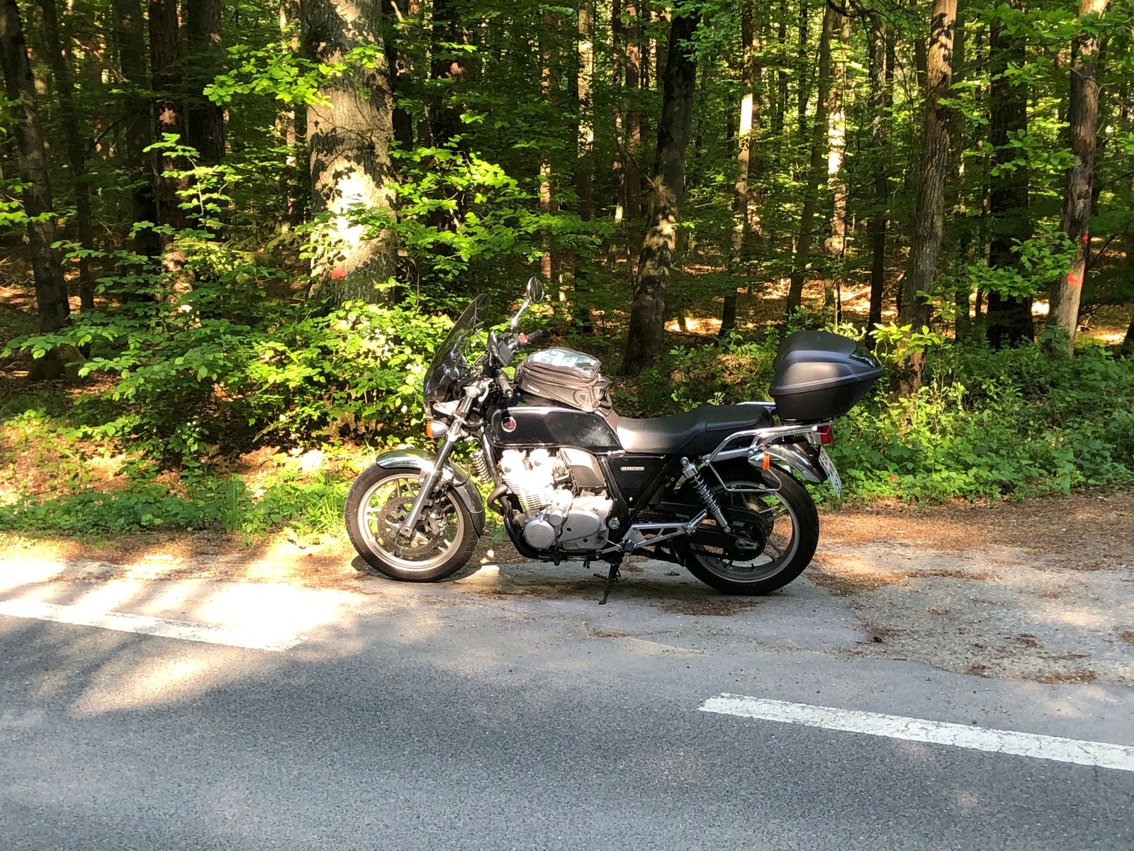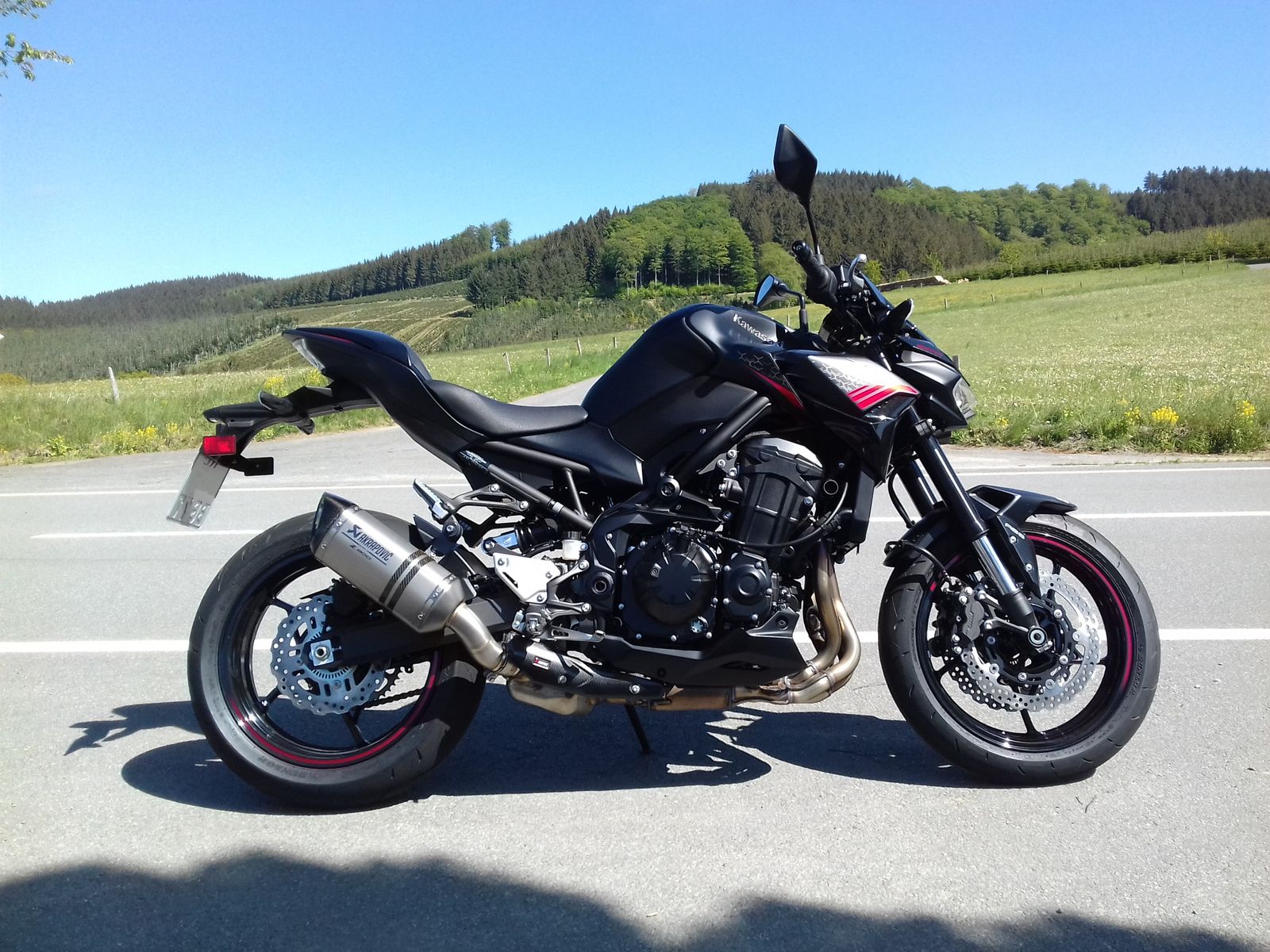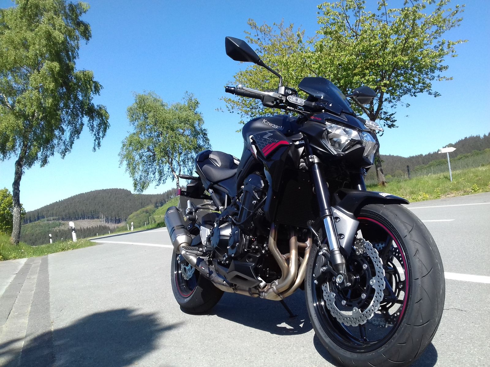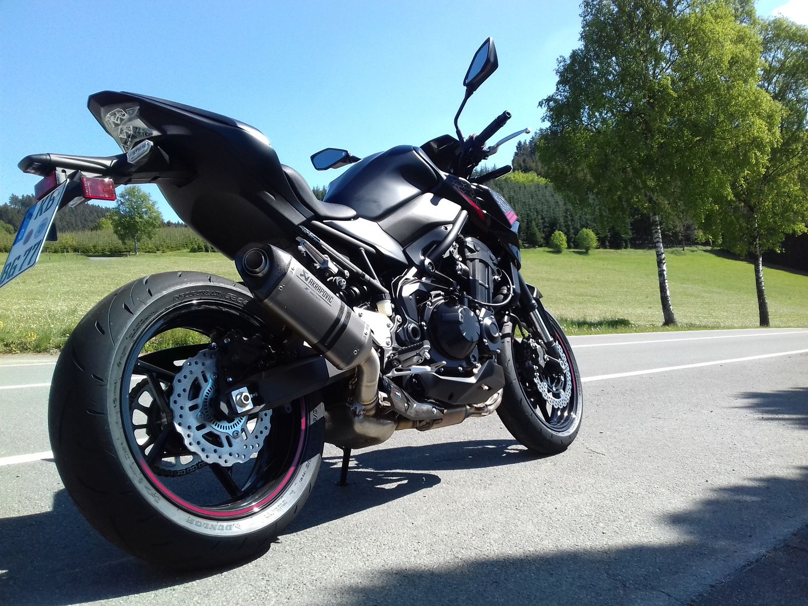 Na, das ist natürlich eine Kawasaki Z900, Modelljahr 2020, mit Akra, Soziusabdeckung u. höherem Windschild. Kurz zusammengefasst, es gab beim Händler ein kleines Terminkuddelmuddel bezgl. Inspektion der NC, und als Entschädigung für das fehlende Werkstattersatzfahrzeug hat man mir kurzer Hand eine Vorführmaschine mitgegeben. Die Z900 habe ich ganz bewusst gewählt, weil ich deren Werdegang seit ihrem Erscheinen mit Interesse verfolge und bisher keine Gelegenheit für eine Probefahrt hatte, bzw. nur mit dem Schwestermodell, der Z900RS. Die mir allerdings nicht so gut gefallen hat.