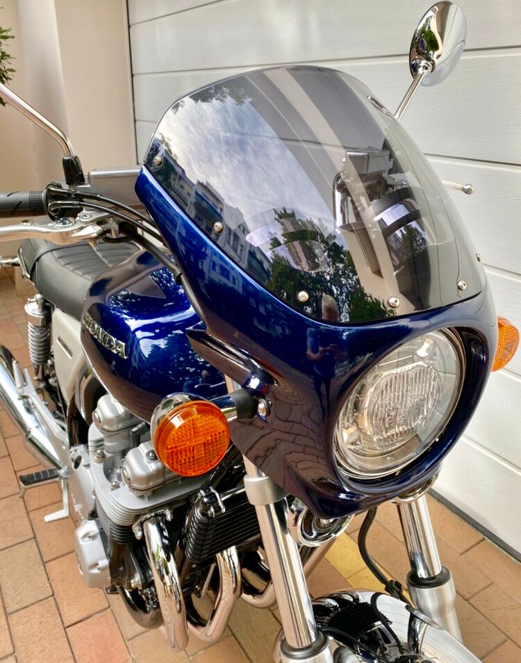 Mir gefällt sie genau so wie sie ist in der Kombination des blauen Tanks mit den Alu-Seitendeckeln. Wäre dieser lackiert gewesen, hätte ich ihn in Aluoptik foliert!