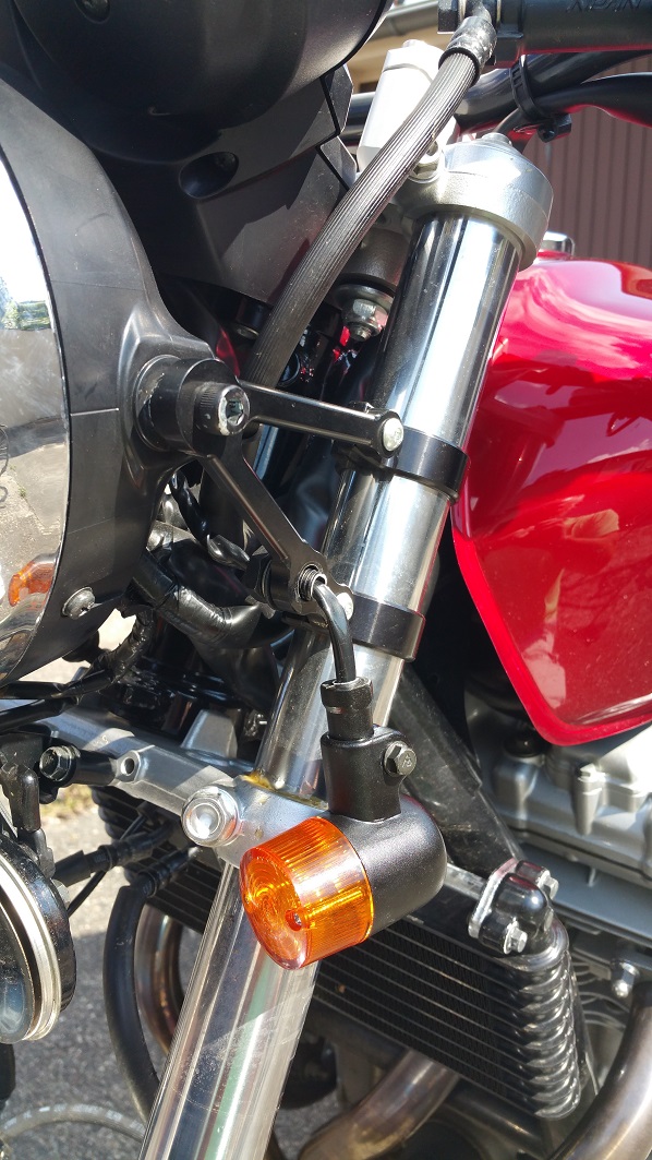 irgendwie ist es mir in den Sinn gekommen andere Blinker zu montieren. Irgendwie gefällt mir der runde MZ Style der Blinker an meiner CB SC 65 nicht .