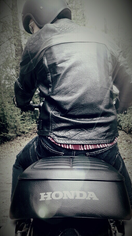 Passend dazu kurze schwarze Lederjacke und Motorradjeans.. Klamotten müssen zu so einem Bike einfach passen... Volltextil (oder sogar noch Warnweste drüber) mag sicherer sein, jedoch einfach unpassend zum Bike. Gesamtkonzept muss stimmen.. Andere Meinungen?