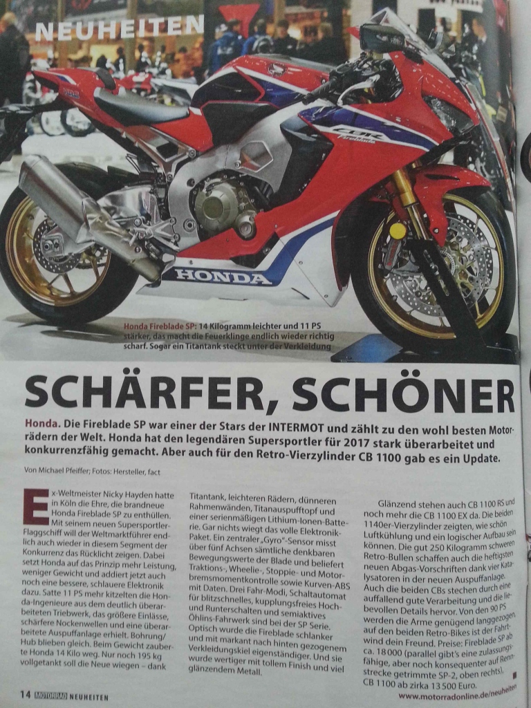 in der Motorrad ist ein kurzer Bericht über die neuen Honda-Modelle