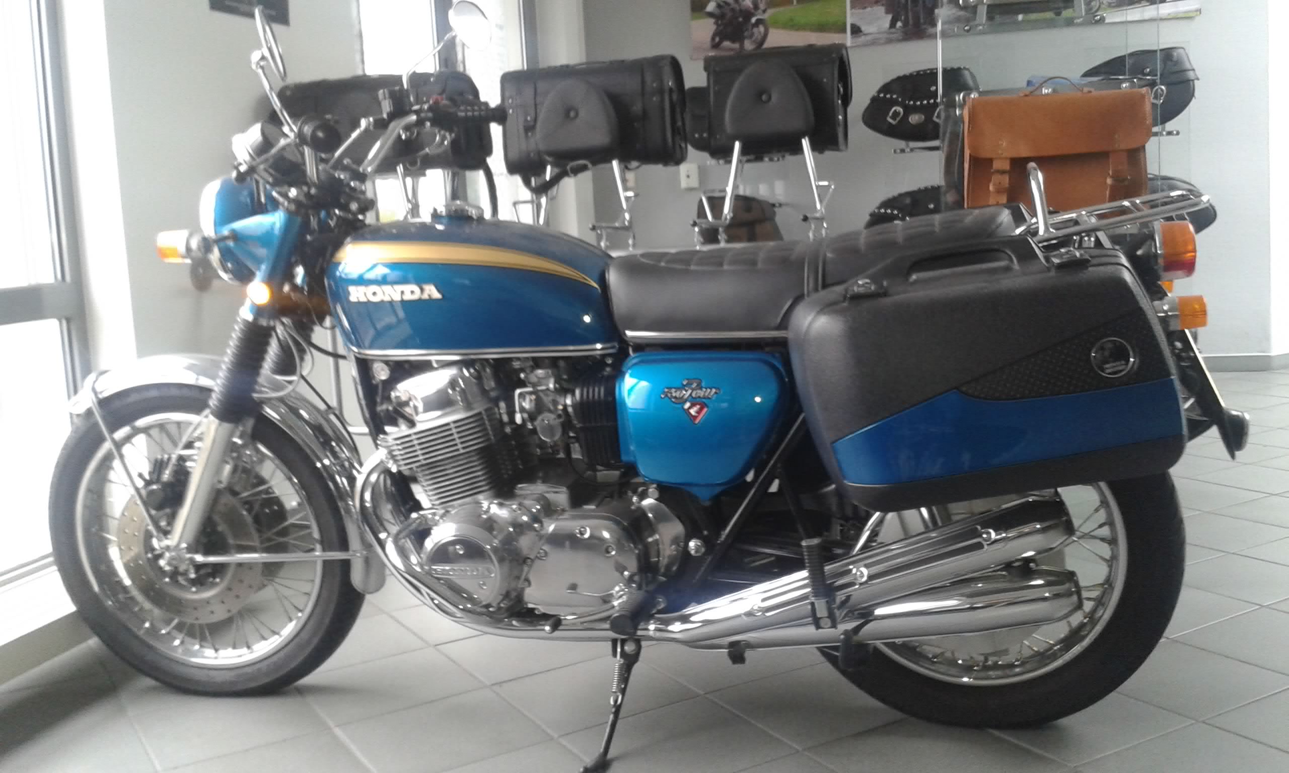 Alles anzeigenGepäcklösungen waren schon am Urahnen manchmal „mächtig“! Das folgende Bild schoss ich mal bei Hepco&Becker im Eingangsbereich, glaube eine K1. War vom Chef, hat natürlich Koffer und Kettenkasten aus eigenem Haus. Für den Kettenkasten muß man etwas reinzoomen, dann sieht man ihn trotz der etwas schwachen Handy-Kameraauflösung (war wohl noch Samsung Mini 3):
