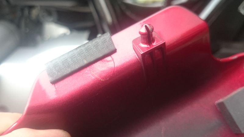 Heute auf dem Weg nach Hause merke ich, daß der linke Seitendeckel nicht mehr richtig hält und unter meinem Knie so seltsam wackelt.