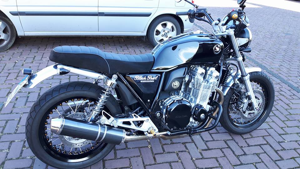 CB 1100 (BlackPearl), Bj. 2013, LSL Fender, Ledersitzbank modifiziert, Retro-Blinker und Rückleuchte, BOS Endtopf (Danke Dirk
