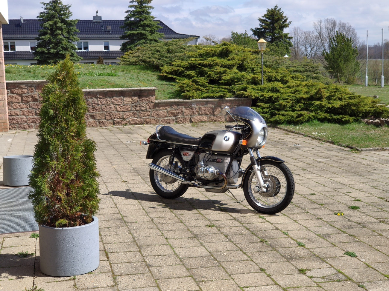Die Speichenräder, polierten Motorteile, Lackierung von 1975 (gab es nur in diesem Jahr) und Bremsflüssigkeitsbehälter