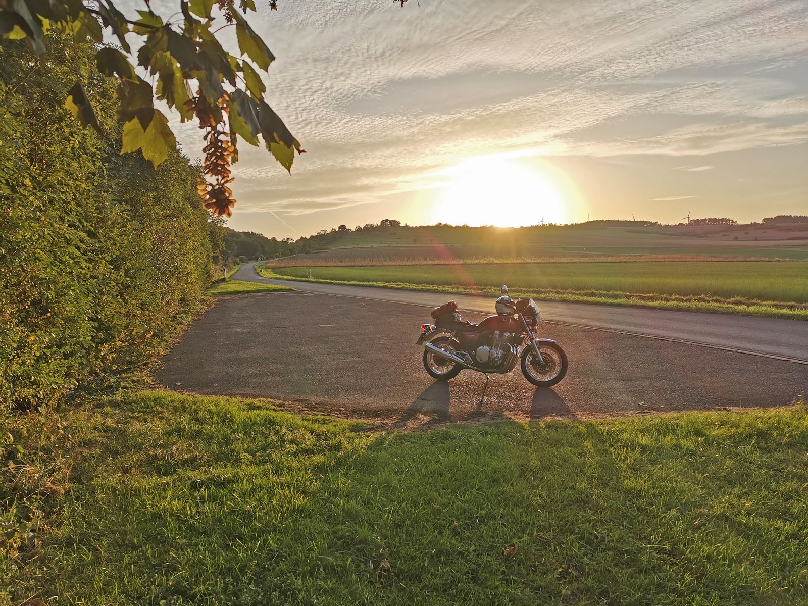By the way, für alle die sich in der Vergangenheit gesorgt haben dass es unserer CBeleven zu Heiss um den Kopf wird, der junge 550er Reiter hat damit halb Südeuropa mit Gepäck und Sozia unter die Dunlops genommen, alles ohne Ölkühler bei oftmals in Sardinien, Sizilien, Korsika und Spanien herschenden 30 Grad im Schatten. Also fahrt unbesorgt durchs Klimakterium. Der Motor der 550er hat jetzt mindestens 180.000 km auf den Kipphebeln, wichtig war immer nur rechtzeitiger Ölwechsel und Ventilkonrolle. Zudem war man auch mit anderen Drehzahlen unterwegs und der Motor hat keinen Ölkühlkreislauf, nur Fahrtwindkühlung, puuh