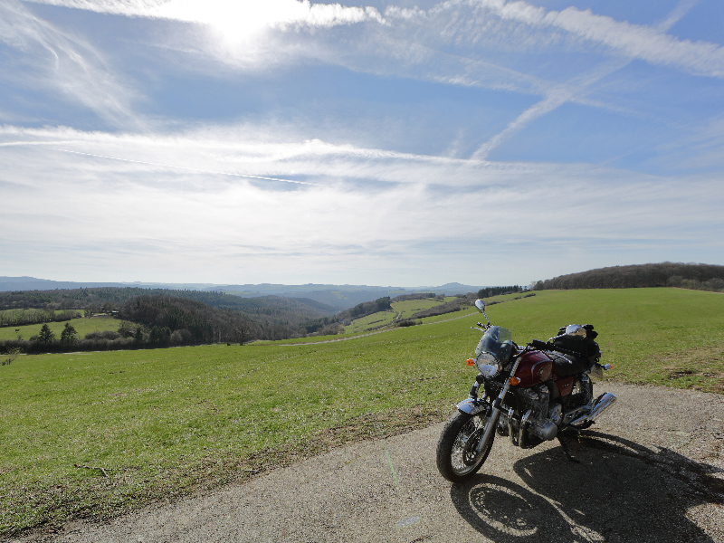 Sie hat jetzt 83Tsd long distance km herunter und hat mich immer flott ans Ziel gebracht. Ihre Stärke, Ausdauer auf langen Distanzen, ich bin mit Ihr mit Koffern in die Seeaplben gefahren. Start 5:00 Morgens in Düsseldorf, Ankunft 18:00 Uhr in La Mure, in der Region Rone les Alpes, vom Krad gestiegen und in Ruhe ein Pression gehalten. Von den ganzen 1000 Kilometern waren es nur knapp 200 Autobahn. Eine Stunde Mittagessen incl. Das habe ich mit keinem andern Töff geschaft, alle 380 Km mal nach nach ner Tanke schauen, das bringt Vorteile, und wenn die Fuhre eimal rollt dann pfeift sie auch 230, voausgesetzt die Koffer sind mit Riemen gesichert. Ein tolles Reisekrad auch für Zwei. Aber mein Schatz fährt nich mehr so gerne lange Strecken, jetzt verauf ich sie. Dafür steht die CB in der Garage, mit ihr werden dann die Strecken gemacht. Allerdings den Trip wie in die Seealpen werde ich mit der CB nicht schaffen, (in dem Zeitfenster) dafür fehlt die Verkleidung, aber sie ist bei weitem die schönere Lady und der Genuß mit Ihr zu gleiten hat mich völlig überzeugt. Desweiteren bin ich Hondafahrer seit meinem 18zehnten, die BMW war ein Ausrutscher, aber kein schlechter. Ich finde allerdings ein Motor und dessen Bauteile sollten in die Richtung rotieren in die sich das Zweirad bewegt, andernfalls kommt eine gewisse Unruhe ins Gebälk. So genug des Vortrags.