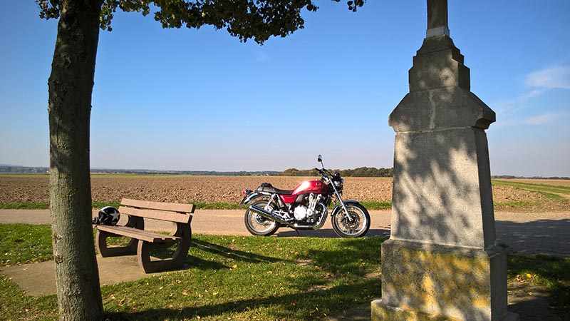 ich habe ja letzten Freitag meine Dicke abgeholt, und am Samstag bin ich durch die Oktobereifel geschnurrt, mal eben entspannte 370 Kilometerchen gegondelt, ein wirklich feines Mopped. Ich bin echt begeistert von dem freundlichen Fahrzeug. Einfach große Klasse!!! Ich werde das Gerät auch so lassen, es gibt Designentwürfe die kann man nicht verbessern, ist so als würde man an einen eames chair Häkeldeckchen klöppeln. So, und nun noch einige sonnige Bilder zum Aufwärmen.