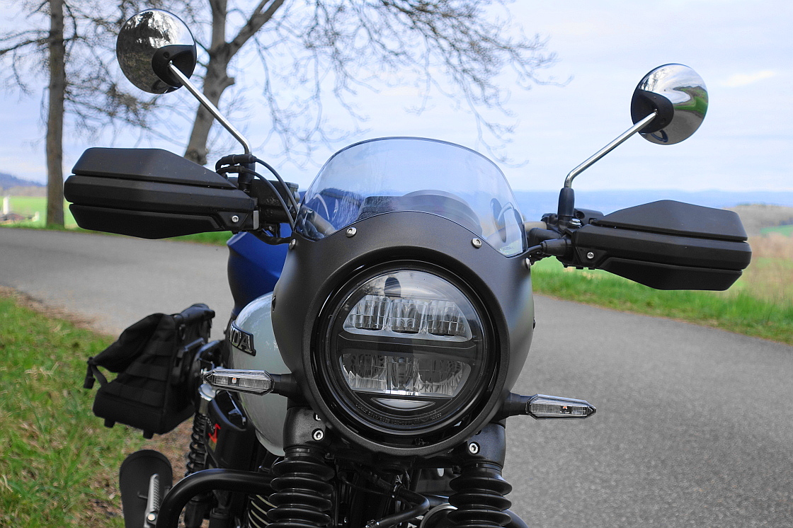 .ich bin felsenfest überzeugt die retro-Lampenmaske und der ungewohnte Motorenanblick machens wesentlich aus..und wenns dann noch etwas tuckert....zudem sieht unsereins etwas dezent gröss, füllig aus auf dem leicht kleineren Radel