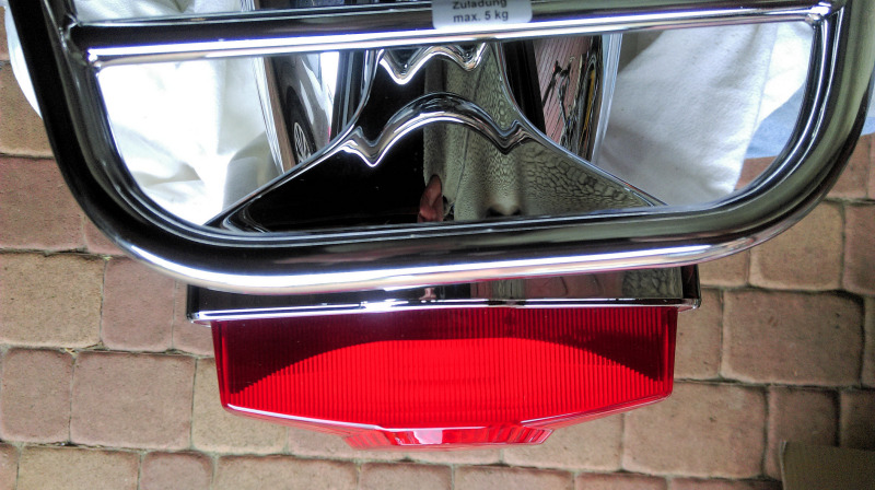 Ich habe versucht, ihn zu montieren. Liess sich aber nicht gerade anbringen (siehe Foto, im Vergleich zum Rücklicht...), und alle Befestigungspunkte waren ziemlich unter Spannung. Habe das reklamiert und Fehling will mit einer Schablone nachprüfen, ob der Träger die richtige Form hat. Fehling kommentierte noch folgendermassen: "leider läßt die Masshaltigkeit bei den Motorrädern zu wünschen übrig, wir statten unsere Gepäckträger mit Langlöchern aus um etwas Spielraum für die Montage zu schaffen. Der Kunde hat die Möglichkeit das Produkt zur Prüfung einzusenden. Wir können anhand unserer Schablonen überprý