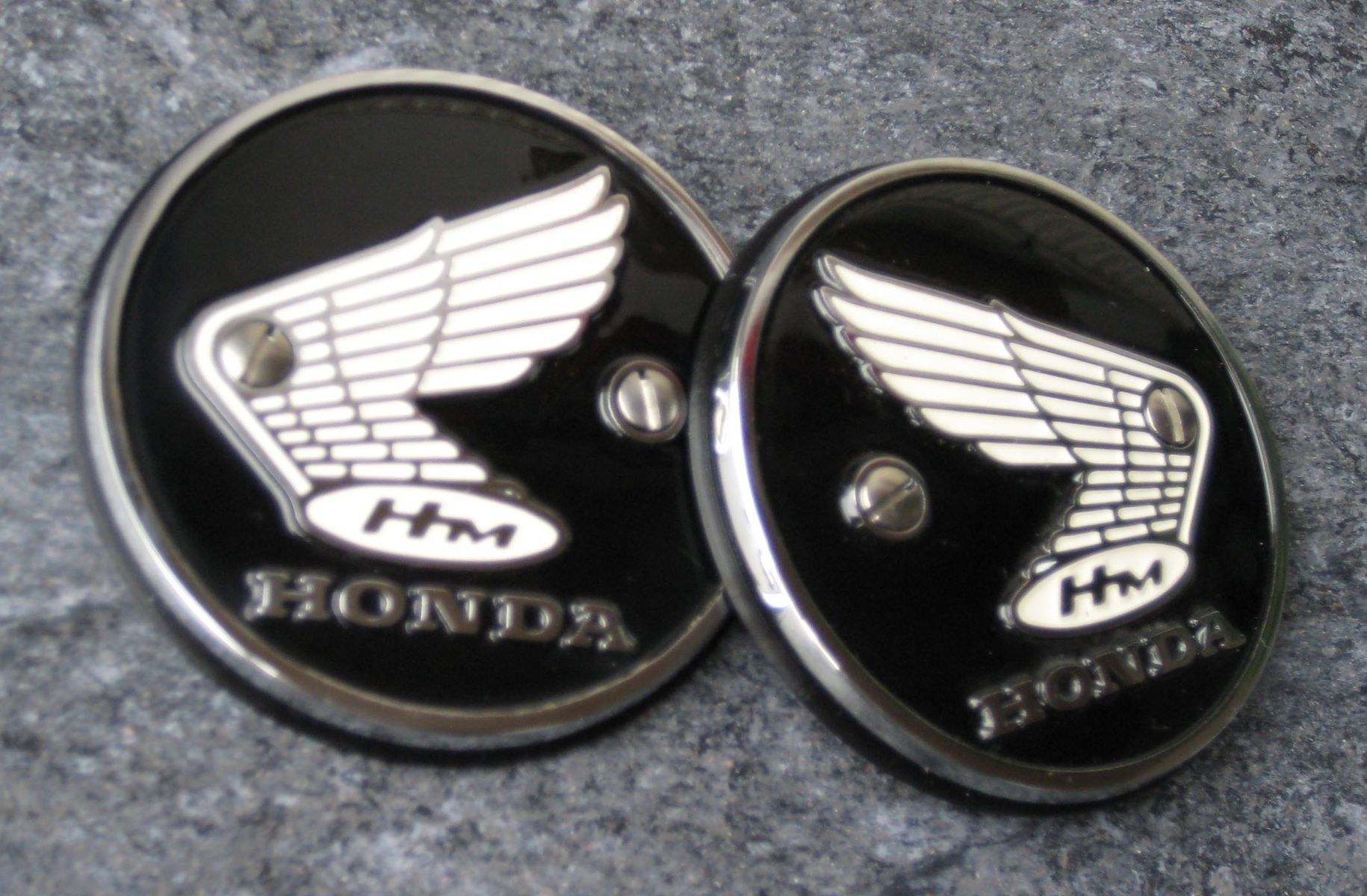 Im Zuge der Neulackierung meiner CB habe ich mir eine Möglichkeit erschaffen, die geschraubten Blechembleme aus den 1960er Jahren