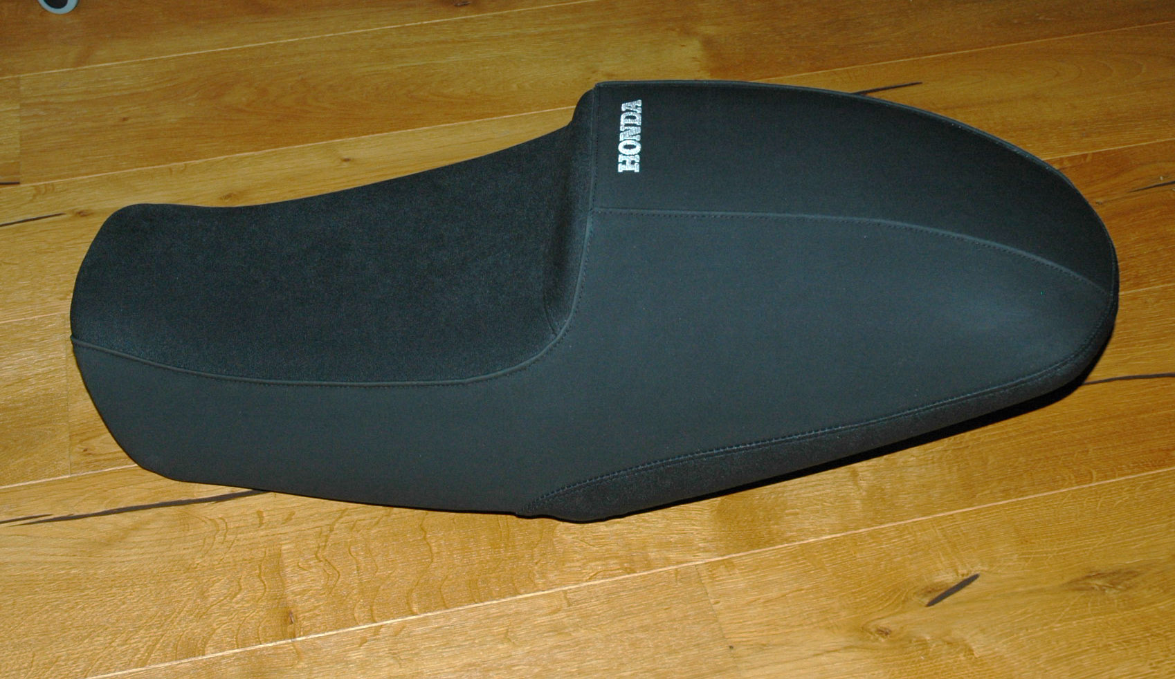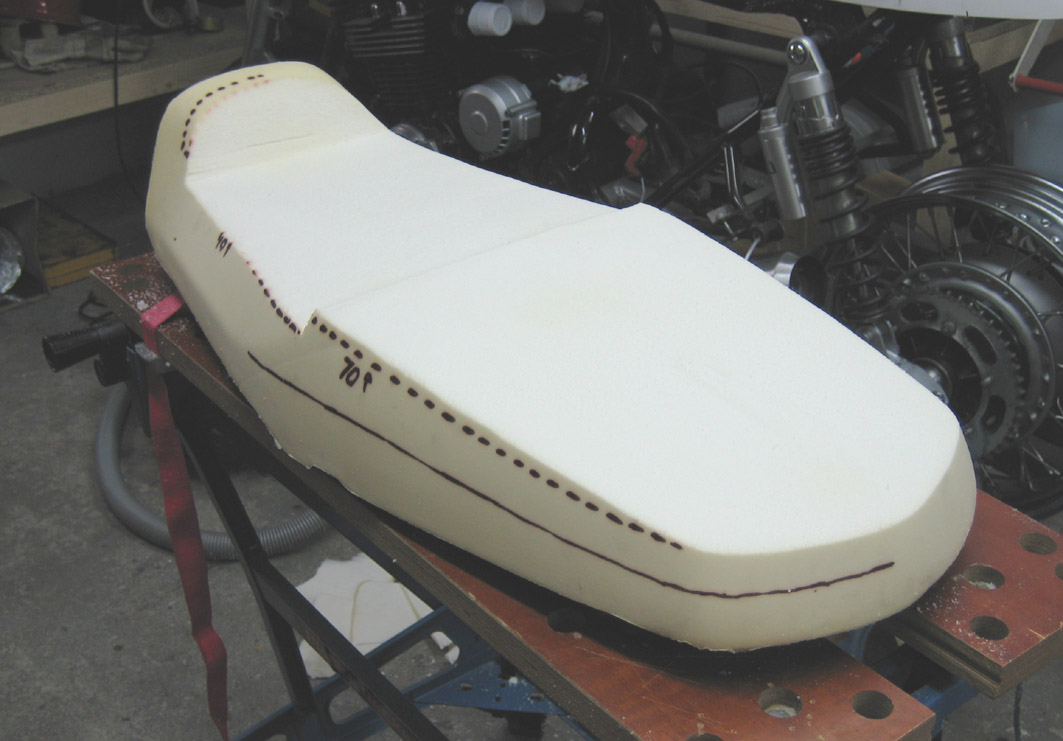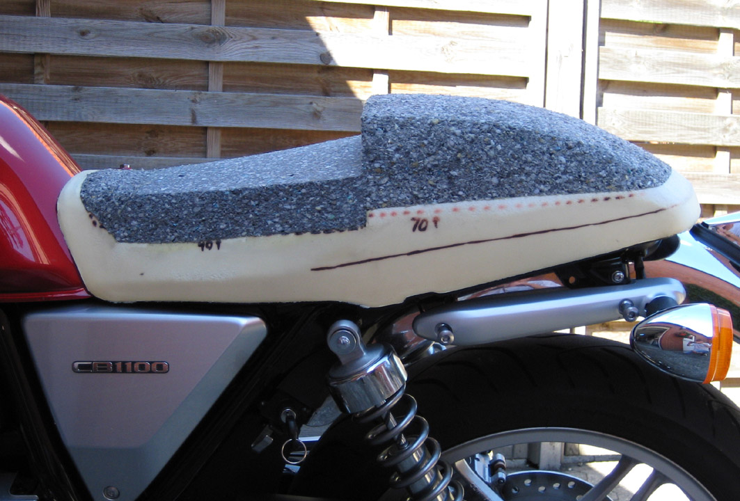 Wer nicht bereit ist horrende Preise für Zubehörsitze auszugeben und wer sich gern die Bude vollsaut kann auch mal probieren sich die Sitzbank nach persönlichen Vorstellungen anzufertigen. Da mir ebenfalls die originale CB 1100 A Sitzbank zu tief und unbequem war, habe ich vorerst das Teil der 2014er EX montiert und einen deutlichen Komfortgewinn festgestellt. Da die Originale nun über war hab ich mal Hand angelegt und etwas rumgepolstert. Vorbild war die K&H Höckersitzbank von Samurider für schlanke 630.- Taler plus Versand, plus Zoll, plus Steuer, plus Bla = unerschwinglich. Also Bezug runter und den Originalschaum geradegeschnitten, dann Plattenware von Verbundschaum mit hoher Dichte aufgeklebt, vorn 40 hinten 70 mm. Mit Elektromesser und Holzraspel wird das dann in Form gebracht, Ausformung und Höhe habe ich von der EX Bank abgeschaut, da diese sich für mich gut fahren lässt. Bezugsstoff aussuchen und sattlern lassen. Vom Finish und der Symetrie her kommt das Ergebnis vielleicht nicht an ein industriell gefertigtes Stück heran, aber als Wechselsitz für Solofahrten allemal schick und günstig, sofern man die Höckeroptik mag. Ein Langzeitsitztest steht noch aus, da das Teil erst zum Spätherbst fertig wurde. -