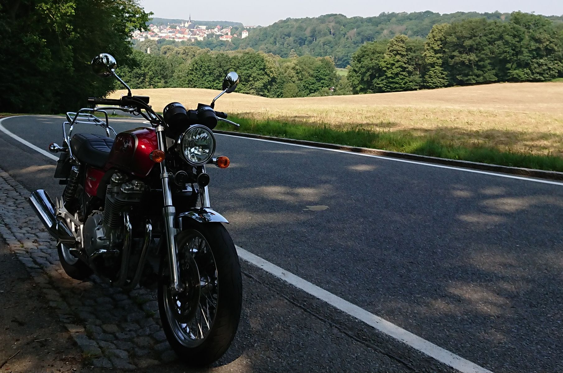Am Sonntag habe ich noch von meinem damaligen UVEX PS430 geschwärmt. Gleich darauf fand ich tatsächlich noch nagelneue UVEX-Helme zum Verkauf für einen zweistelligen Eurobetrag. Heute zu Mittag kam der PS430 an und ich musste gleich eine Runde drehen. Geräusch- und Tragekomfort sind einfach göttlich. Der Wind ist nur noch ein ruhiges Lüftchen, der Motor klingt leiser und dennoch satter und die Reifengeräusche sind fast weg. Es gibt keine Sonnenblende und kein Antibeschlag-Visier, aber an Tagen wie heute muss das auch nicht sein. Das ist mein Zweithelm zum Genießen.