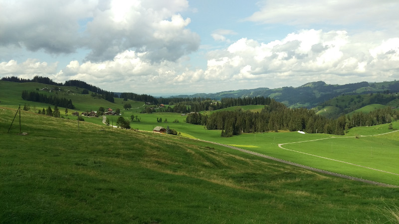 Das Emmental. Vielleicht muss ich mir doch mal eine kleine Knippse besorgen. Auf der einen Seite bin ich mit den Handybildern nicht glücklich, auf der anderen Seite mag ich meine Spiegelreflex auch nicht mitschleppen.