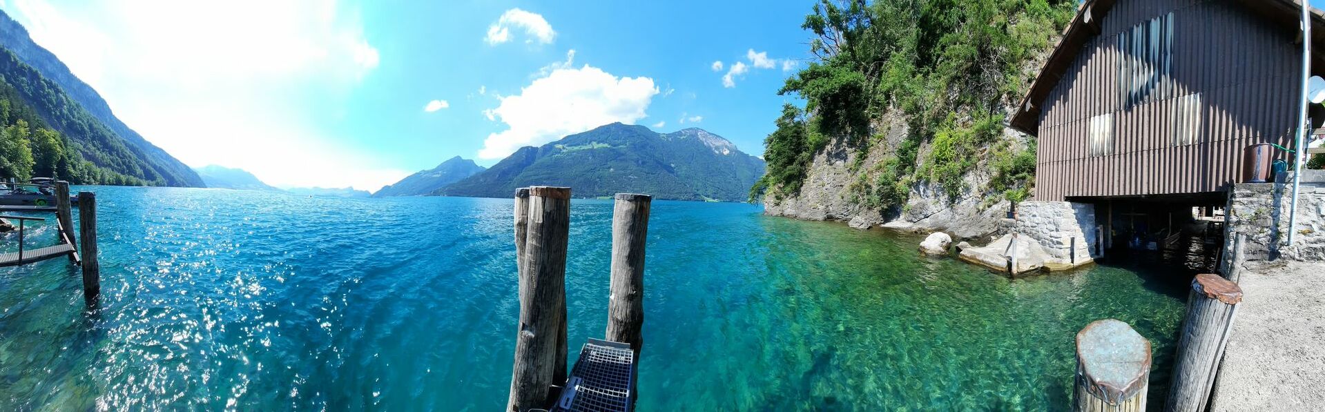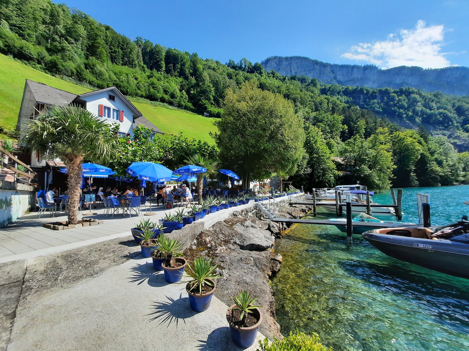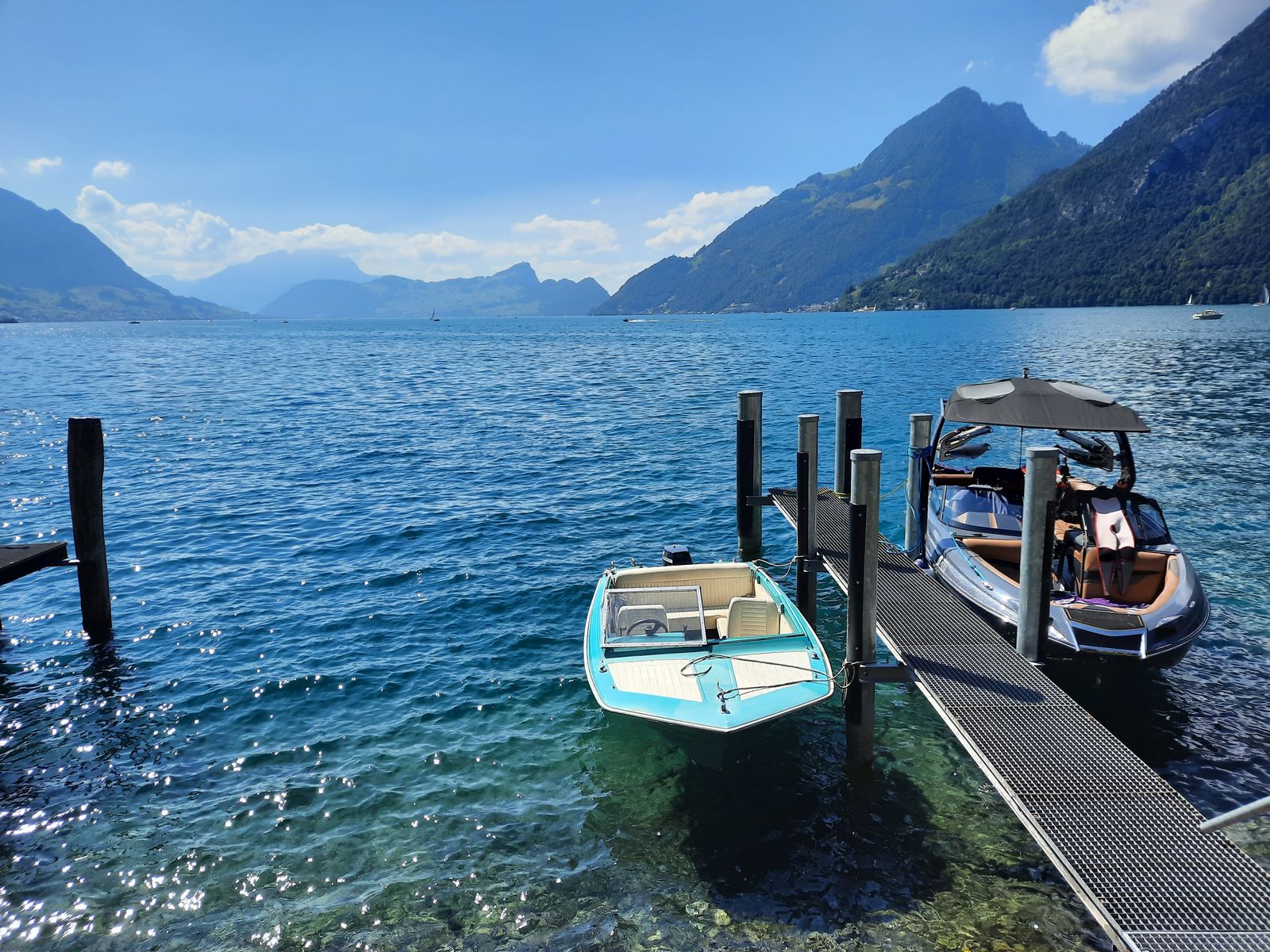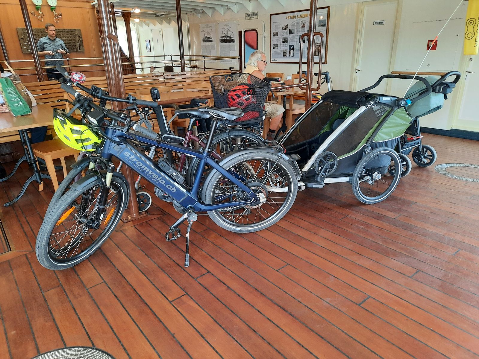 Mit dem Velo auf und auch neben dem Vierwaldstätter See. Meins ist das blaue Pedelec im Vordergrund, dahinter das "normale" 25iger meiner Frau mit Kutsche für den Zwerg.