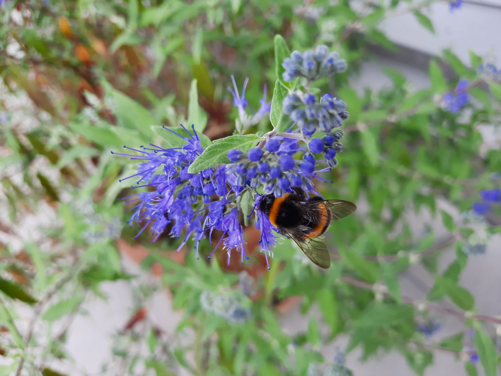 Beim ersten ist der Flügel wahrscheinlich leicht seitlich nach unten geneigt. Deswegen ist der Brustbereich etwas verschwommen und man sieht die Flügel nicht. Die vorderen Beine fehlen auf den ersten Blick. Ich dachte erst sie streift sie sich gerade an den Pollenhöschen ab. Tatsächlich ist es jedoch in der Luft und wird vom Flügel verdeckt. Wenn man genau schaut sieht man es.