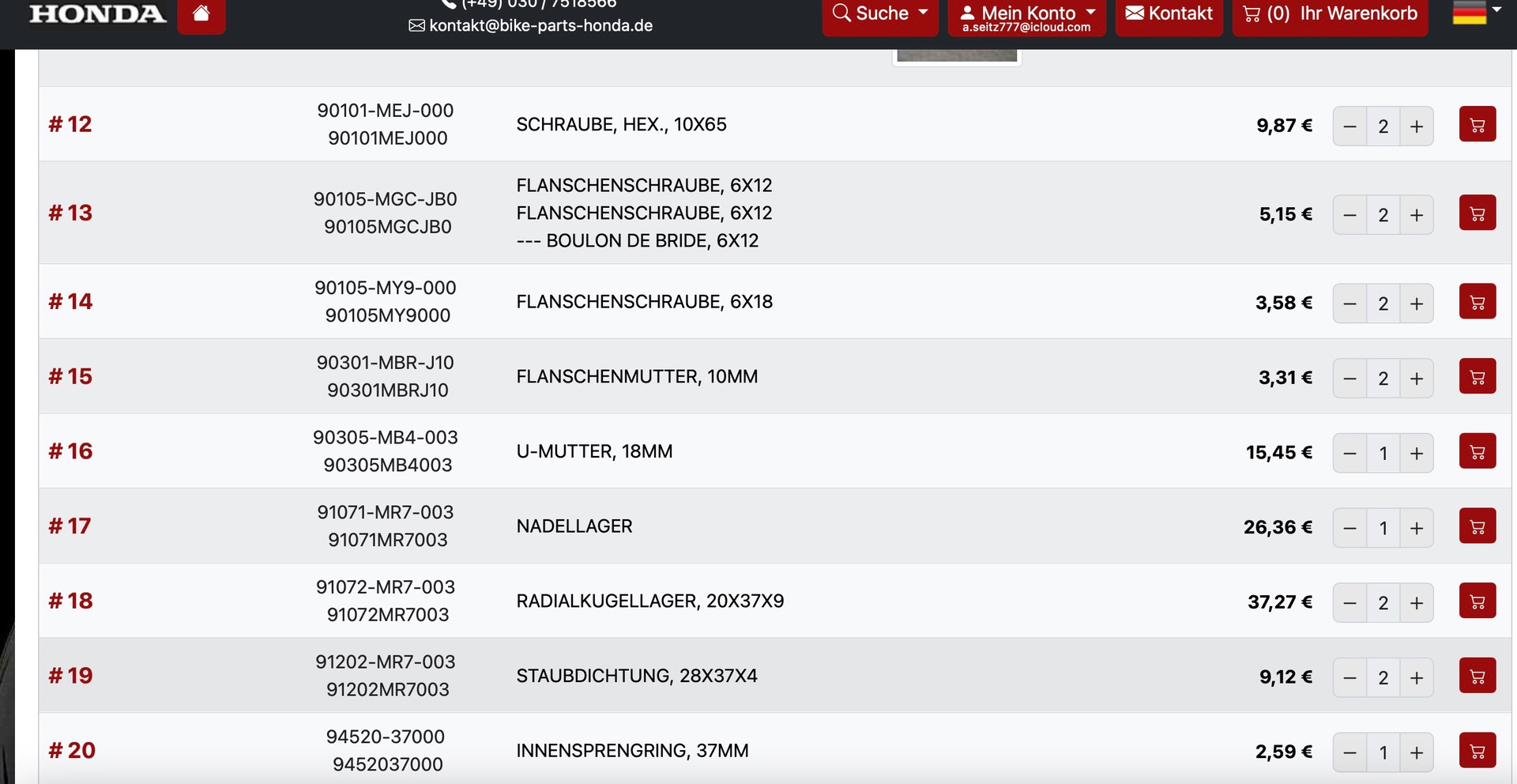 Hmm ist halt offizieller Honda Preis. Würde ich auch nicht günstiger bekommen wenn man selbst bestellt.