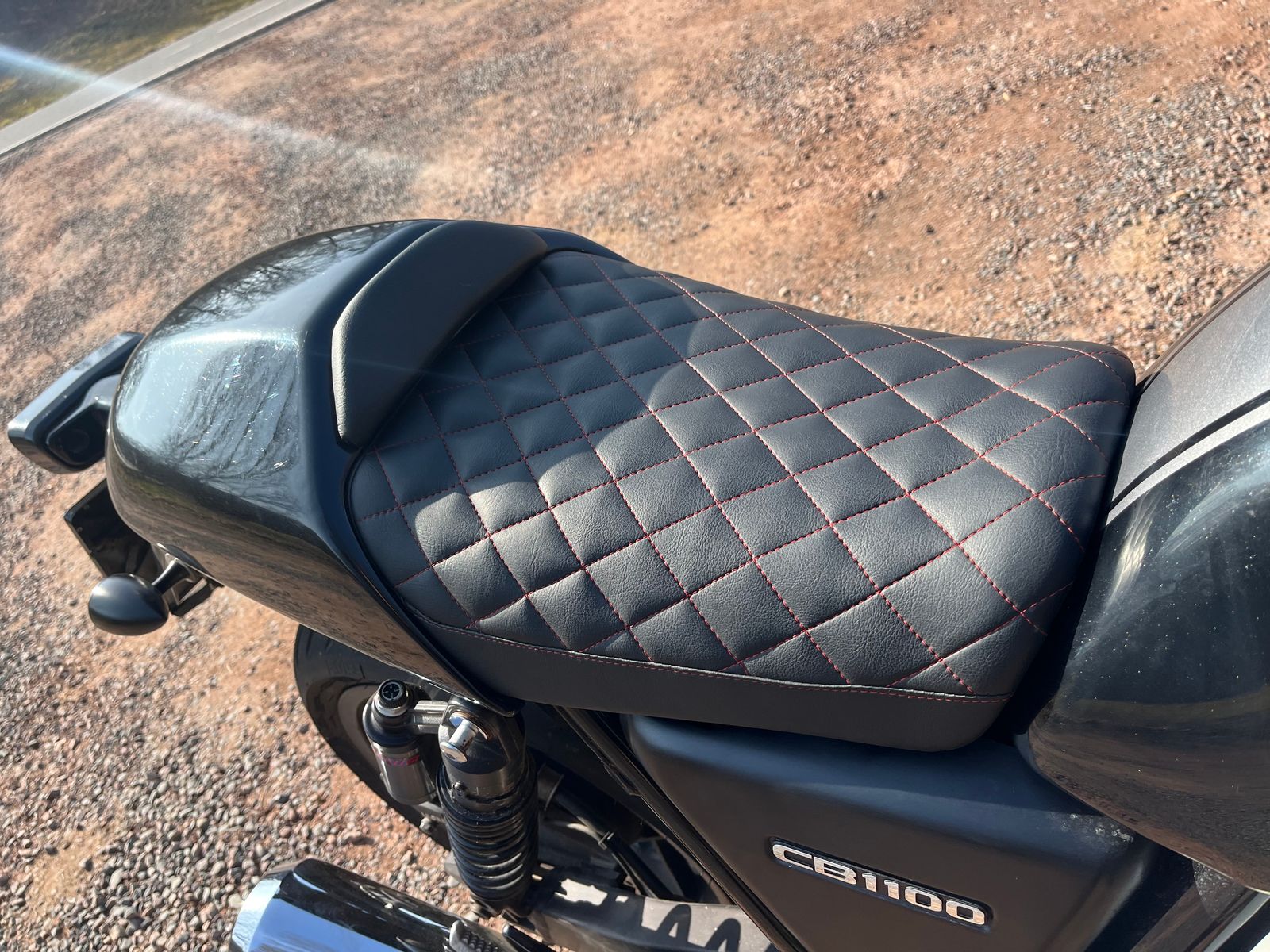 Nach 18 Monaten sturzbedingter Fahrpause ging es jetzt wieder los. Erste Aktion war die CB mit neuer (8 Monate überzogener) HU zu versehen. Sie sprang auf den 2ten Versuch nach Ausbau u. Einbau der Kraftstoffpumpe wg. Lackierung an, lief sauber wie sonst, und der GTÜ-Prüfer sagte "das können wir alles so lassen". Auch die neue Sitzbank aus Japan gefiel.