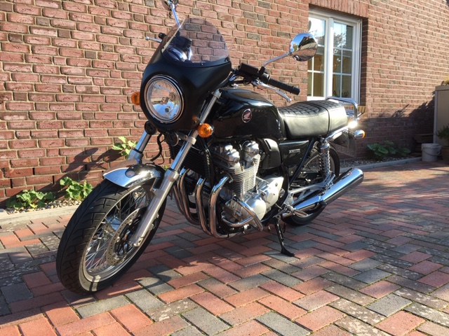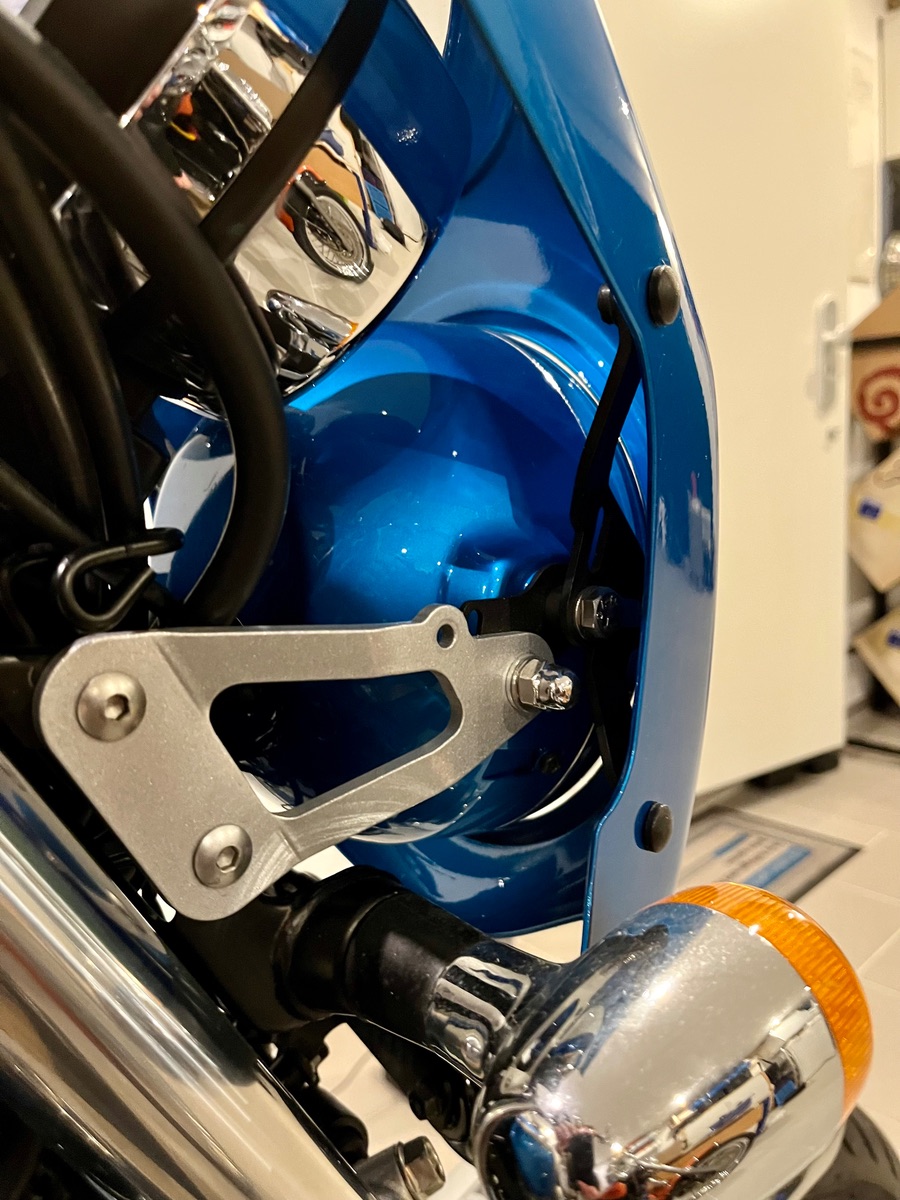 Nachdem ich mich hier im Forum über Lenkerverkleidungen schlau gelesen habe musste es die Puig Retro mit 200mm Lampenausschnitt sein; also bei Louis geholt. Passt vom Durchmesser sehr gut für den Scheinwerfer der 2016er CB 1100 EX. Material der Verkleidung ist schwarz durchgefärbtes Plastik, das vor der Montage eher wabbelig ist, nach dem Anbau ist es aber ausrechend steif. Die Zeiten von soliden GFK Halbschalen…