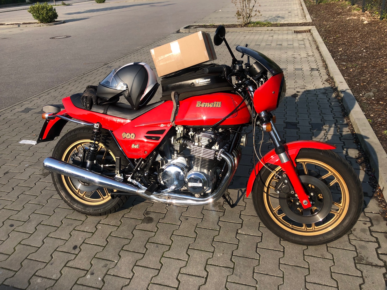 Nach der Putzaktion kam die Sonne. Ich hab die Benelli als Zustellfahrzeug benutzt und ein Päckchen von der Packstation geholt.