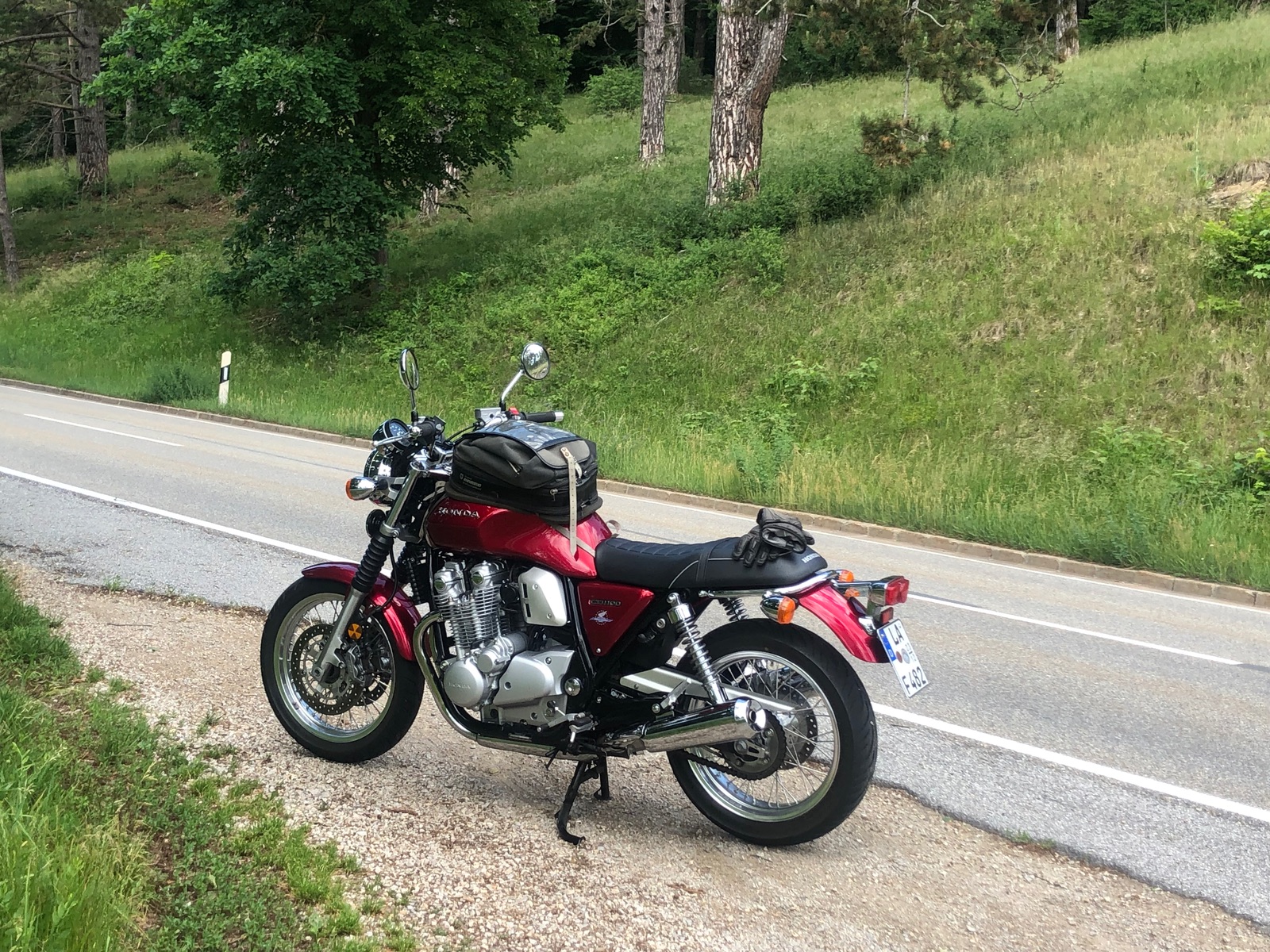 Die CB ist damit sehr handlich und kurvenfreudig. Die Haftung ist auf trockener und nasser Straße über jeden Zweifel erhaben. Ich fühle mich damit wesentlich sicherer als mit der Originalbereifung. Wie lange die Reifen halten, wird man sehen. 8.000 km sollten wieder machbar sein.